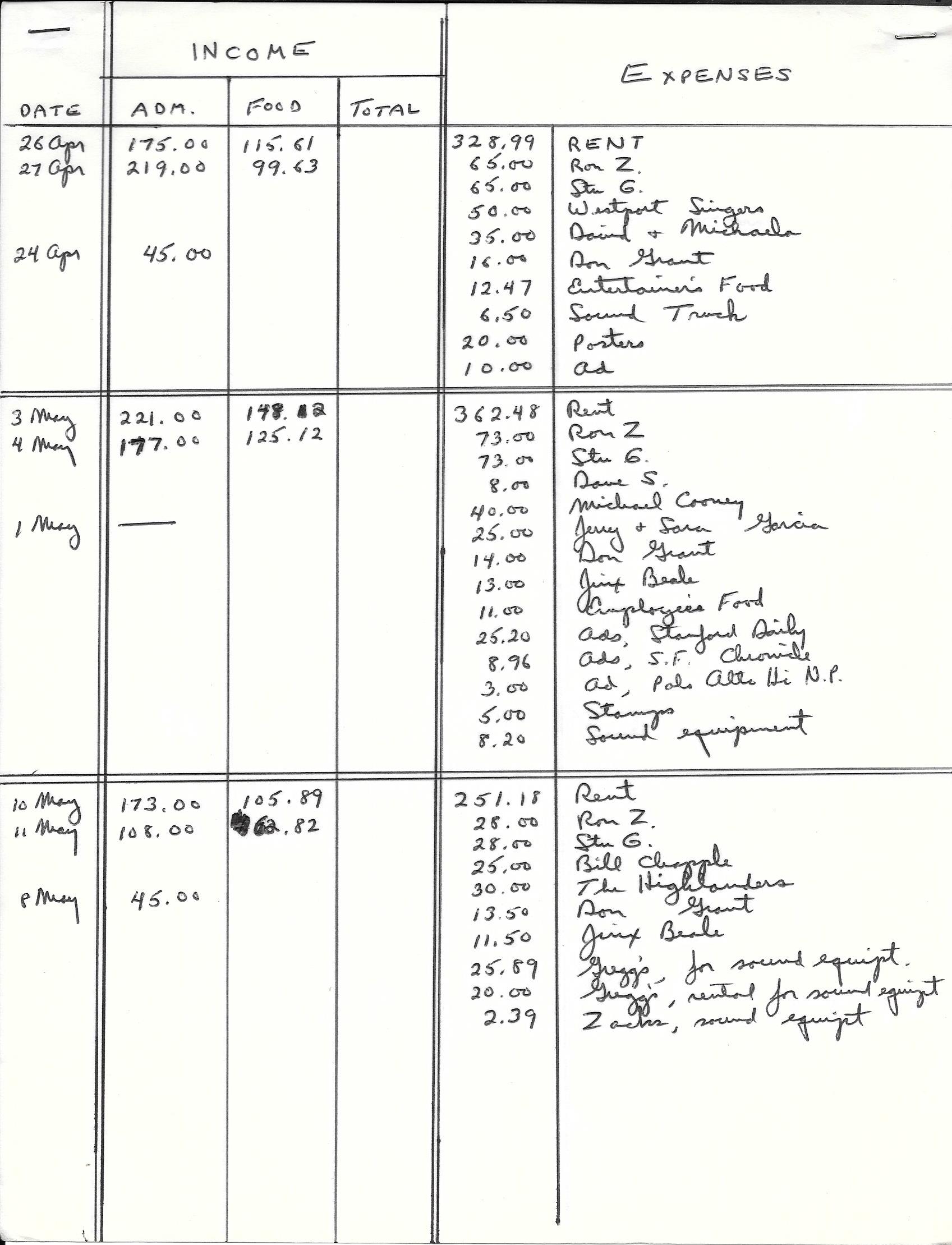 • Jerry & Sara received $25 for performing over the entire weekend
