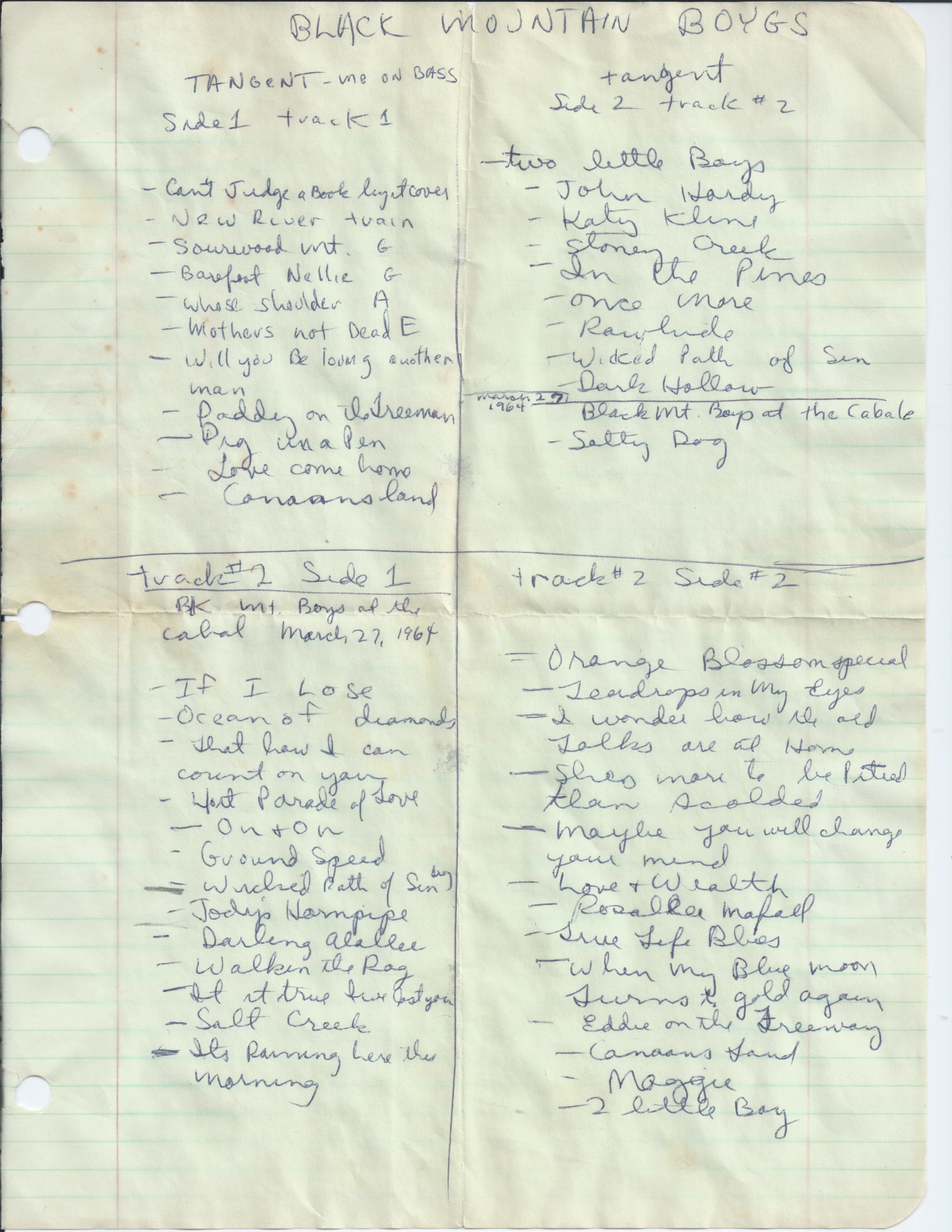 The existing recording is a reel copy. There are cuts between almost each tune, so it's impossible to verify if these are complete sets or mixed sets.