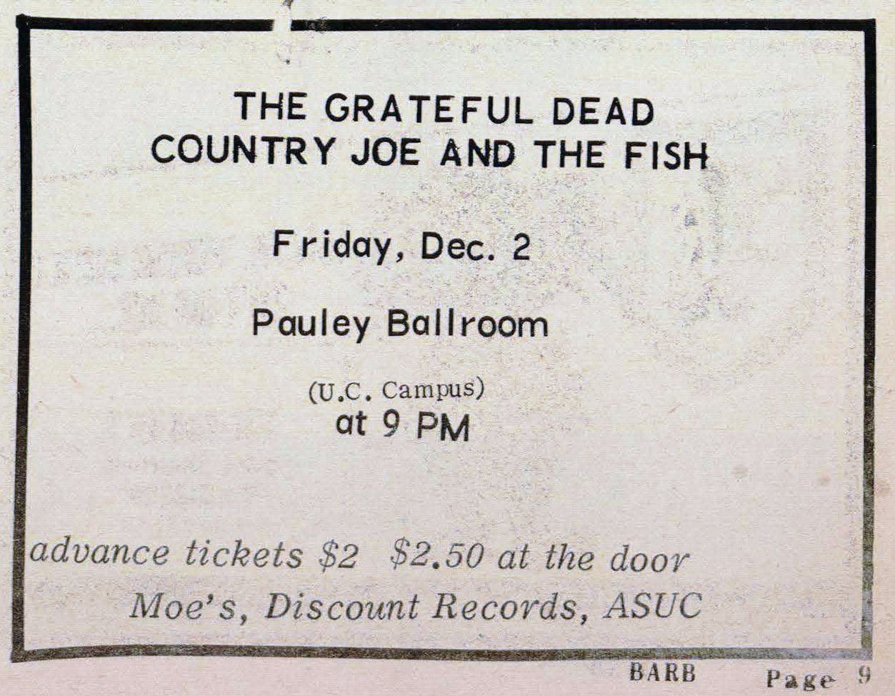 December 2, 1966 Pauley Ballroom, UC Berkeley, CA: Country Joe and The Fish/Grateful Dead