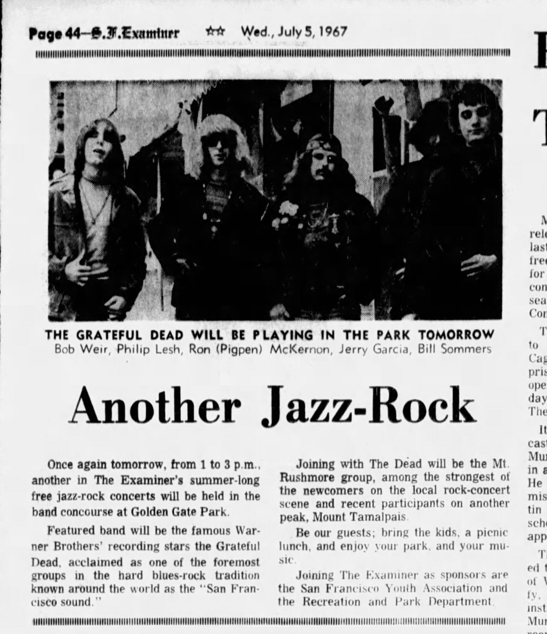 announce: "Another Jazz-Rock," San Francisco Examiner, July 5, 1967, p. 44