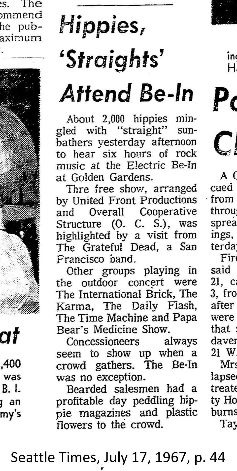 The Grateful Dead perform at Golden Gardens Park in Seattle on July 16, 1967