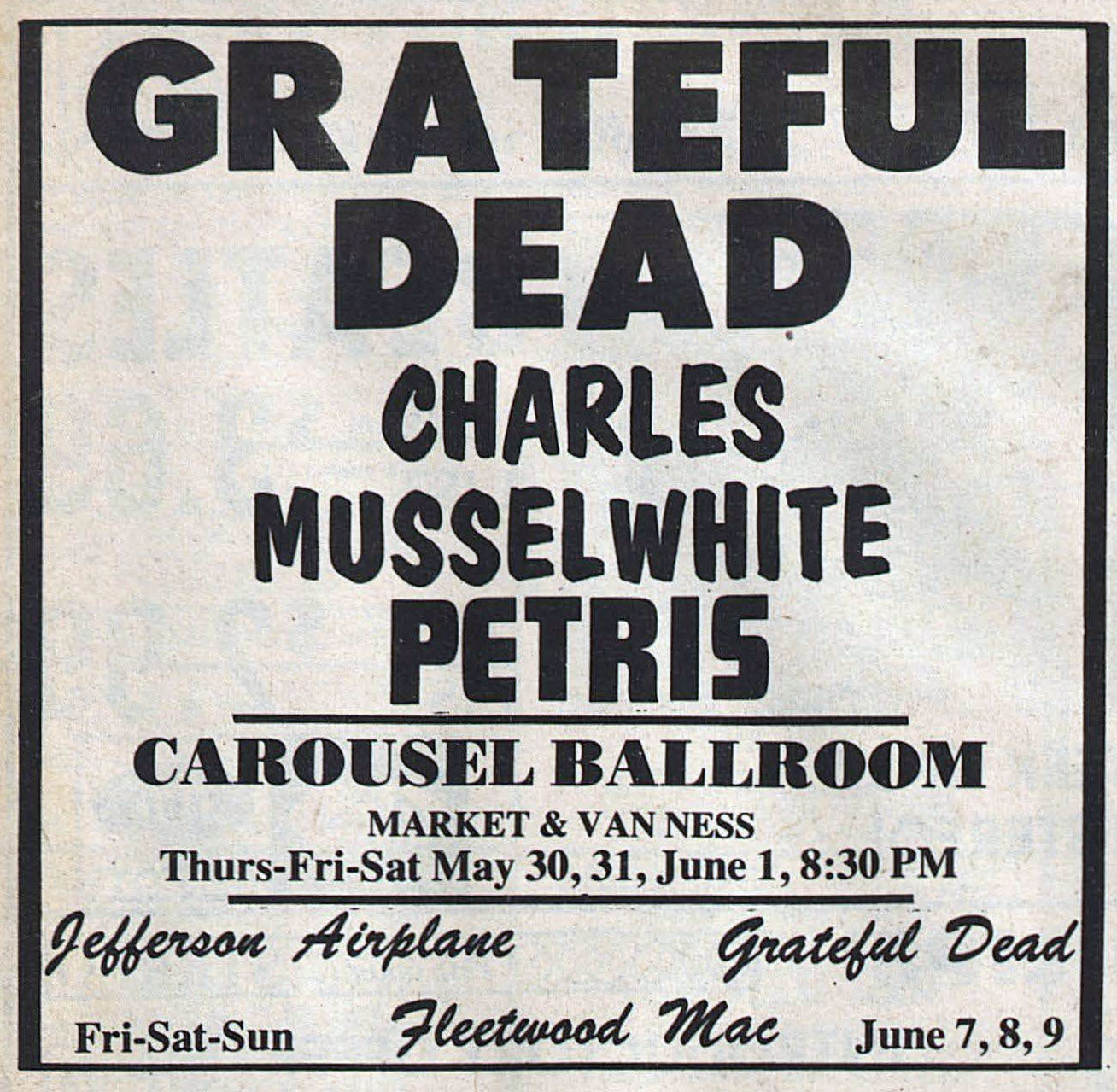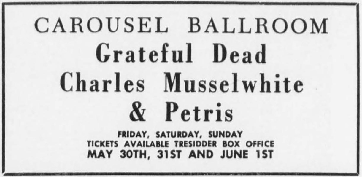 According to DeadEssays blog, there was a misprint on the poster for the Carousel Ballroom run from 5/31-6/2. The poster had the wrong dates of 5/30-6/1.