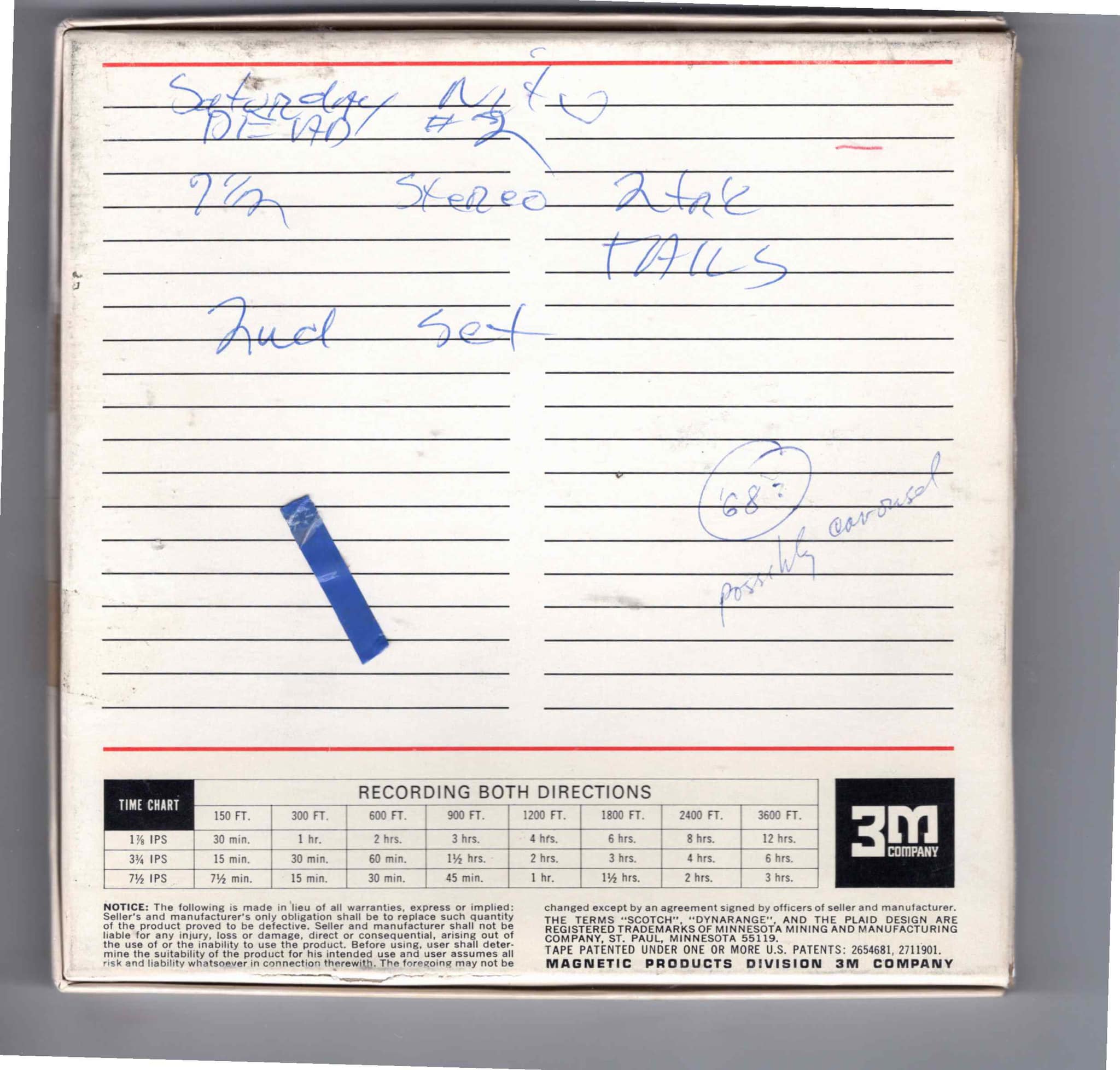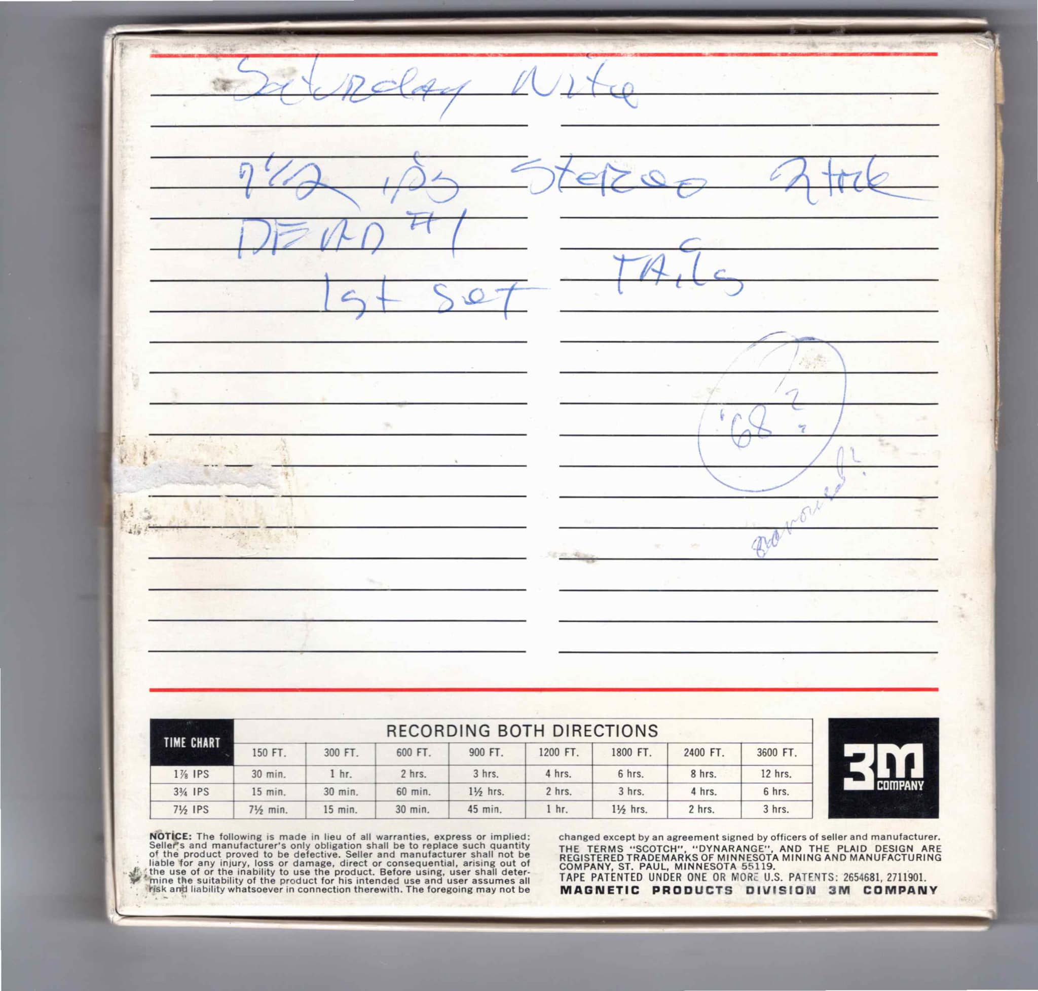 Setlist could also be for the 1968-06-08 Carousel Ballroom event. Setlist is provided by Owsley Stanley Foundation, and comes from newly-discovered Bear mystery reels Owsley Stanley Foundation and more here.