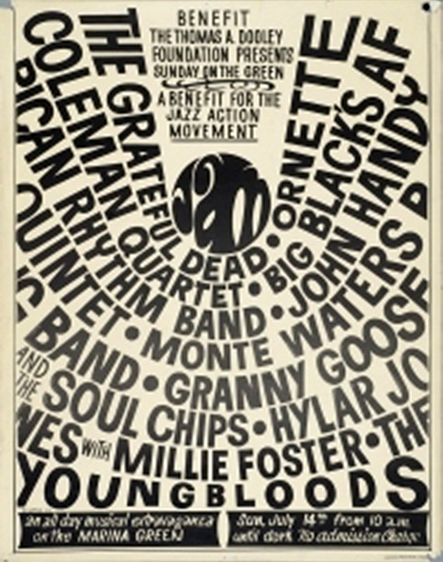 Ornette Coleman Quartet, John Handy Quintet, Big Black Sextet, Youngbloods, Monte Waters Big Band, Granny Goose & the Soul Chips, and Hylar Jones Quartet with vocalist Millie Foster