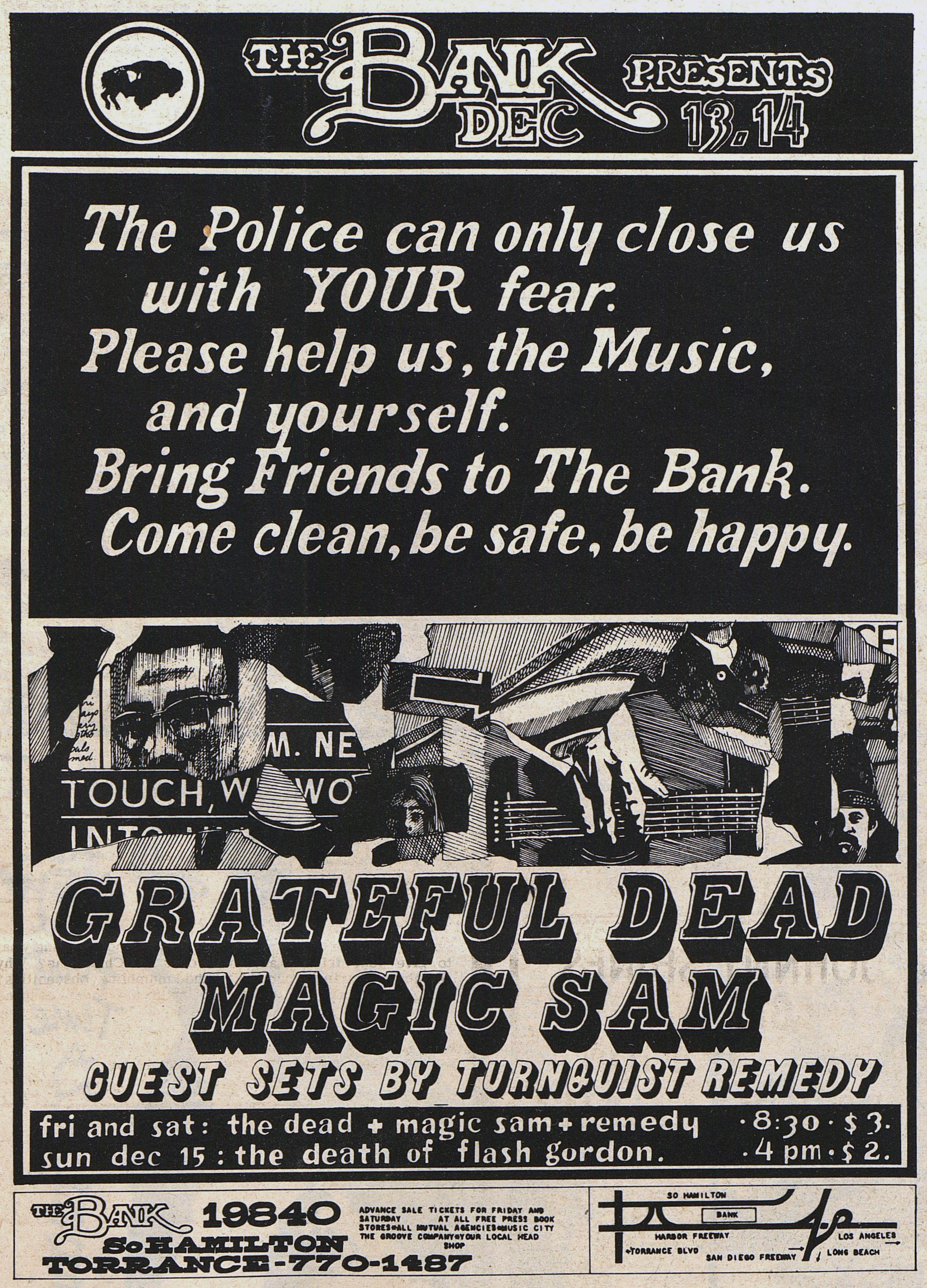 Young drummer David Kemper attended these shows. 15 years later, he'd join the Jerry Garcia Band and spend years as its drummer (Jackson 19922624, 27).