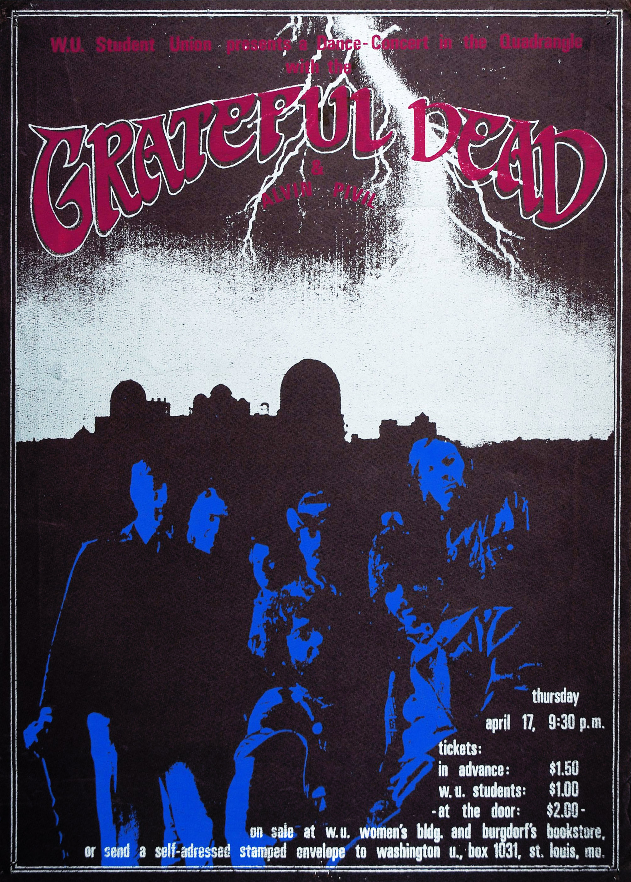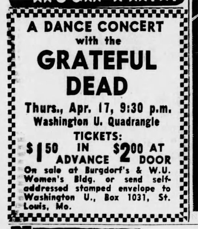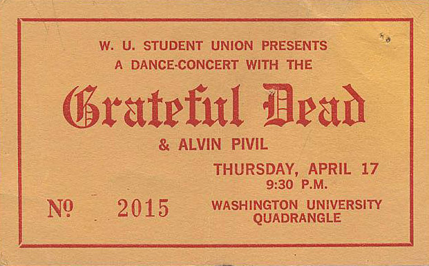 ? "Bear? You all set? I've been asked to announce that there's a lost dog out here somewhere. A brown dog. If anyone sees it, bring it back. Uh, also if (any)body would be so kind to bring uh any lemonade or Cokes or anything back to the band, they're gettin' kind of thirsty during this gig. So if you have a thermos bottle or something or some Pepsis would you please bring 'em back? Would? surely appreciate it. The beautiful thing about working with the Dead is the fact that they need no introduction. They have Pigpen on vocals and conga drums, Bill Kreutzmann and...on drums..."