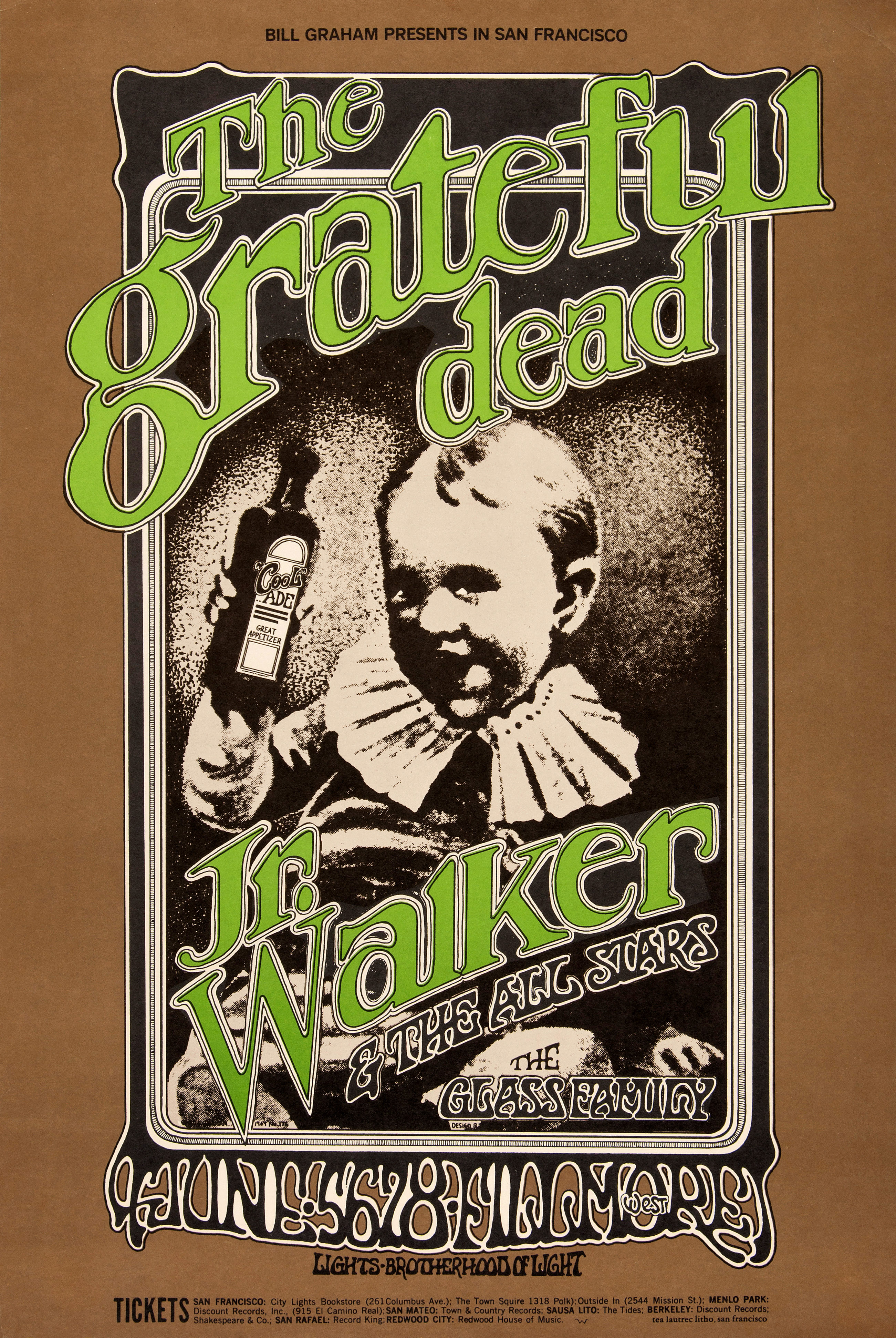 lostlivedead: Grateful Dead/Jerry Garcia Tour Itinerary June 1969 "Sunday afternoon, there had been a fairly substantial free rock show in Golden Gate Park, albeit not including the Grateful Dead. Probably as a result of that, a fair number of musicians seem to have been hanging out at the Fillmore West at the Dead show on that Sunday night. This Sunday night, however, was the time when Owsley [or, Goldfinger -- ed.] distributed some chemical concoction that was far too powerful for human consumption". The recollection is that this was the cause of Garcia sitting out for a portion of the second set.