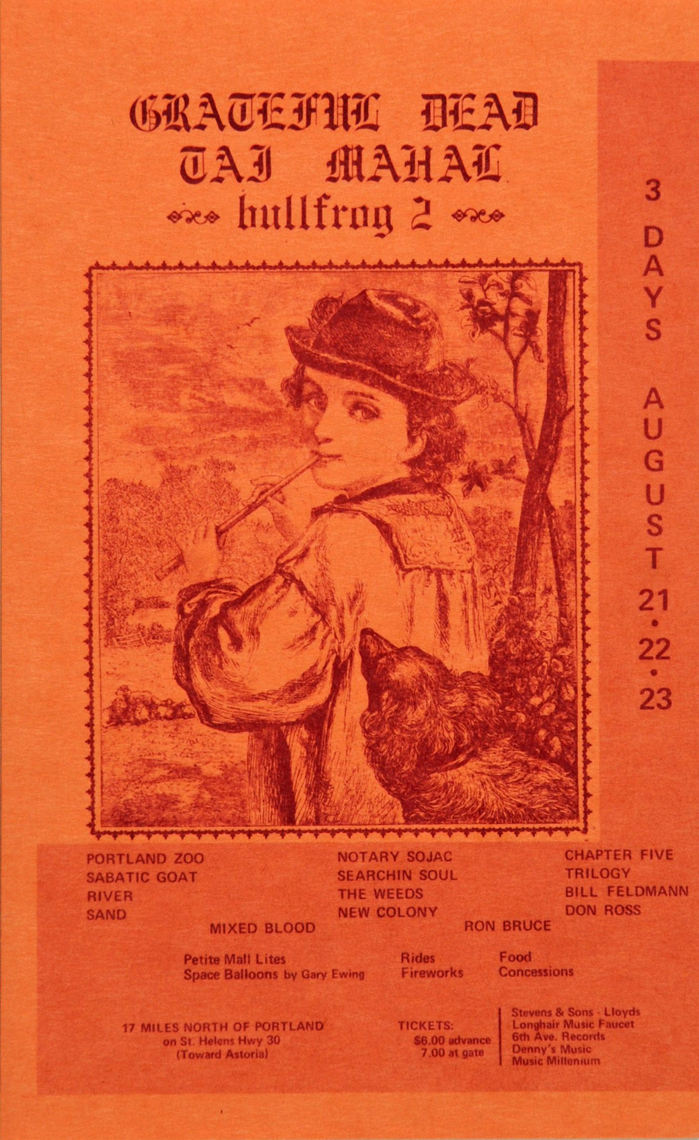 Mixed Blood, Portland Zoo, Sabbatic Goat, River, Sand, Notary Sojac, Searchin Soul, The Weeds, New Colony, Chapter Five, New Trilogy, Bill Feldman, Donn Ross, and Ron Bruce