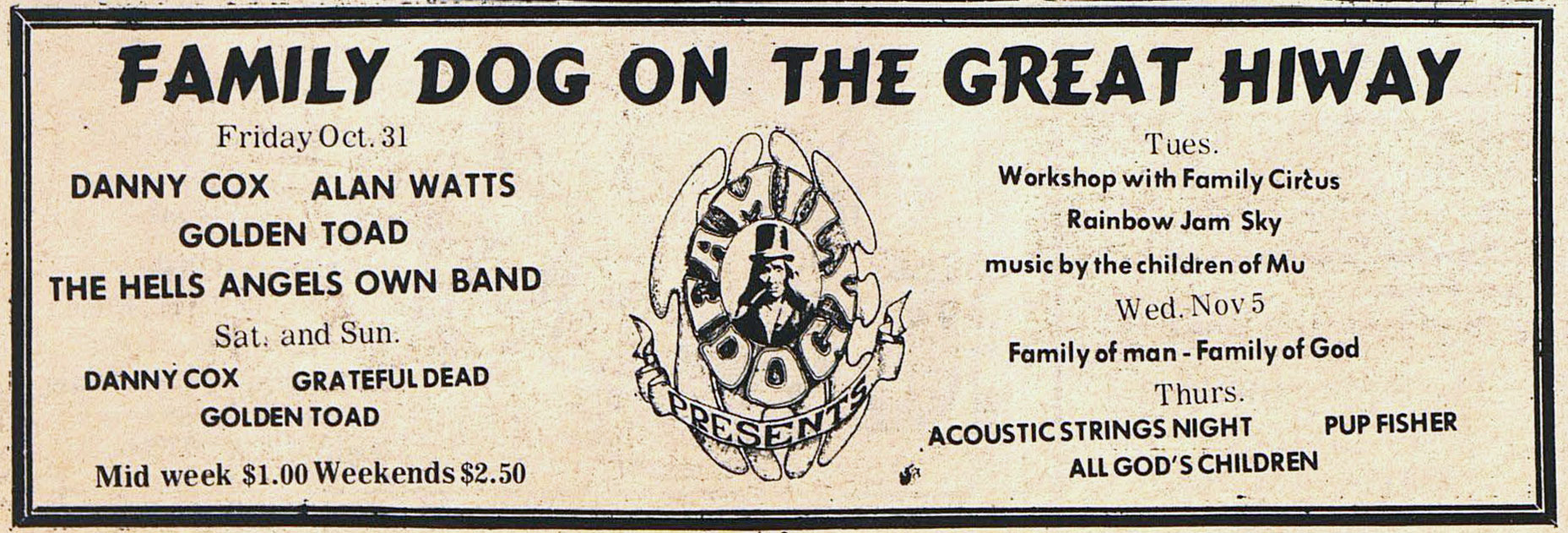 Halloween Weekend 1969: Loma Prieta Room, San Jose State and Family Dog on The Great Highway (Oct 31-Nov 2 '69)