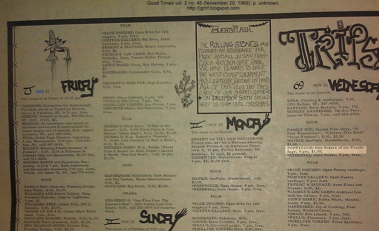 listing: Good Times vol. 2 no. 45 (November 20, 1969), p. unknown;