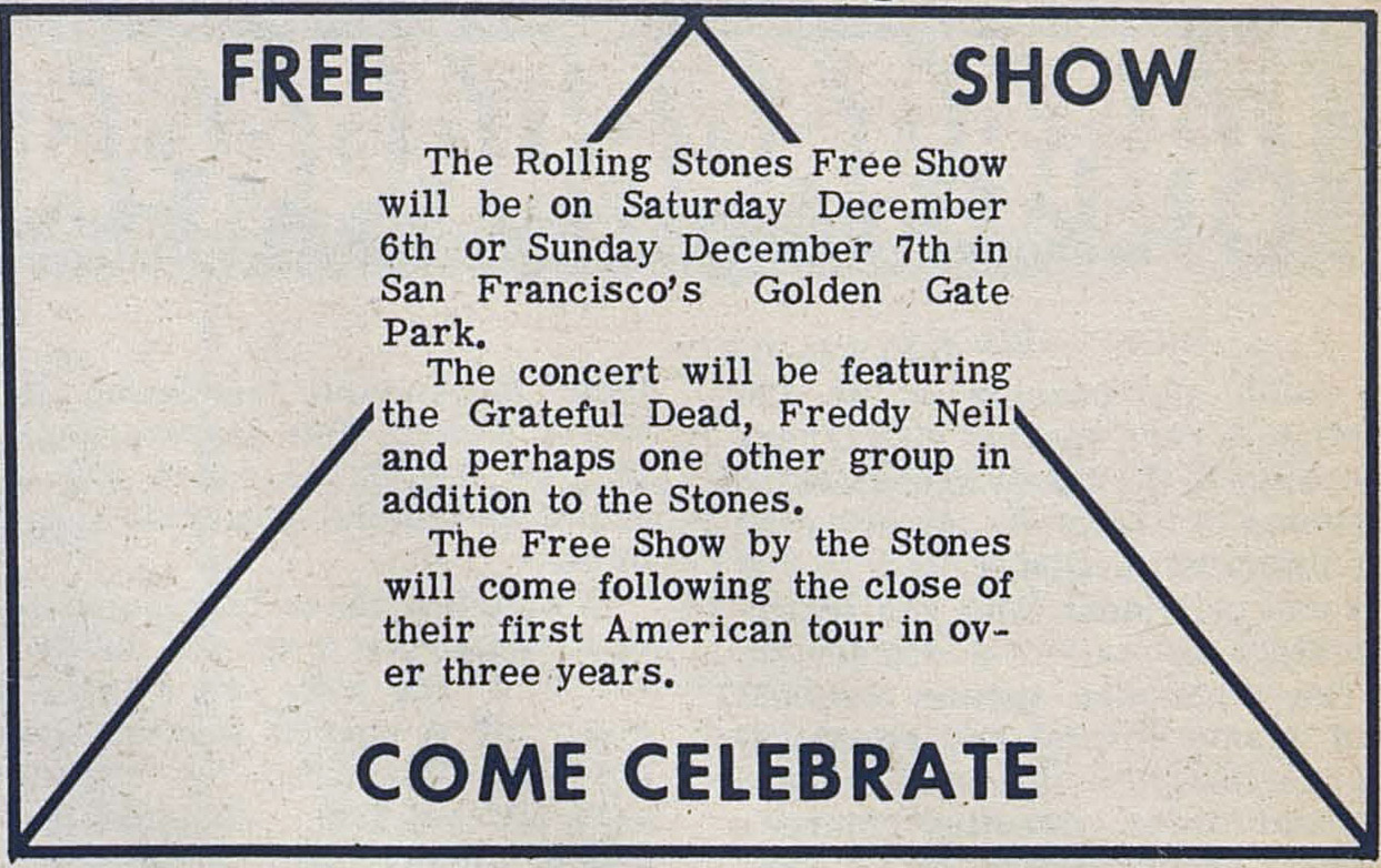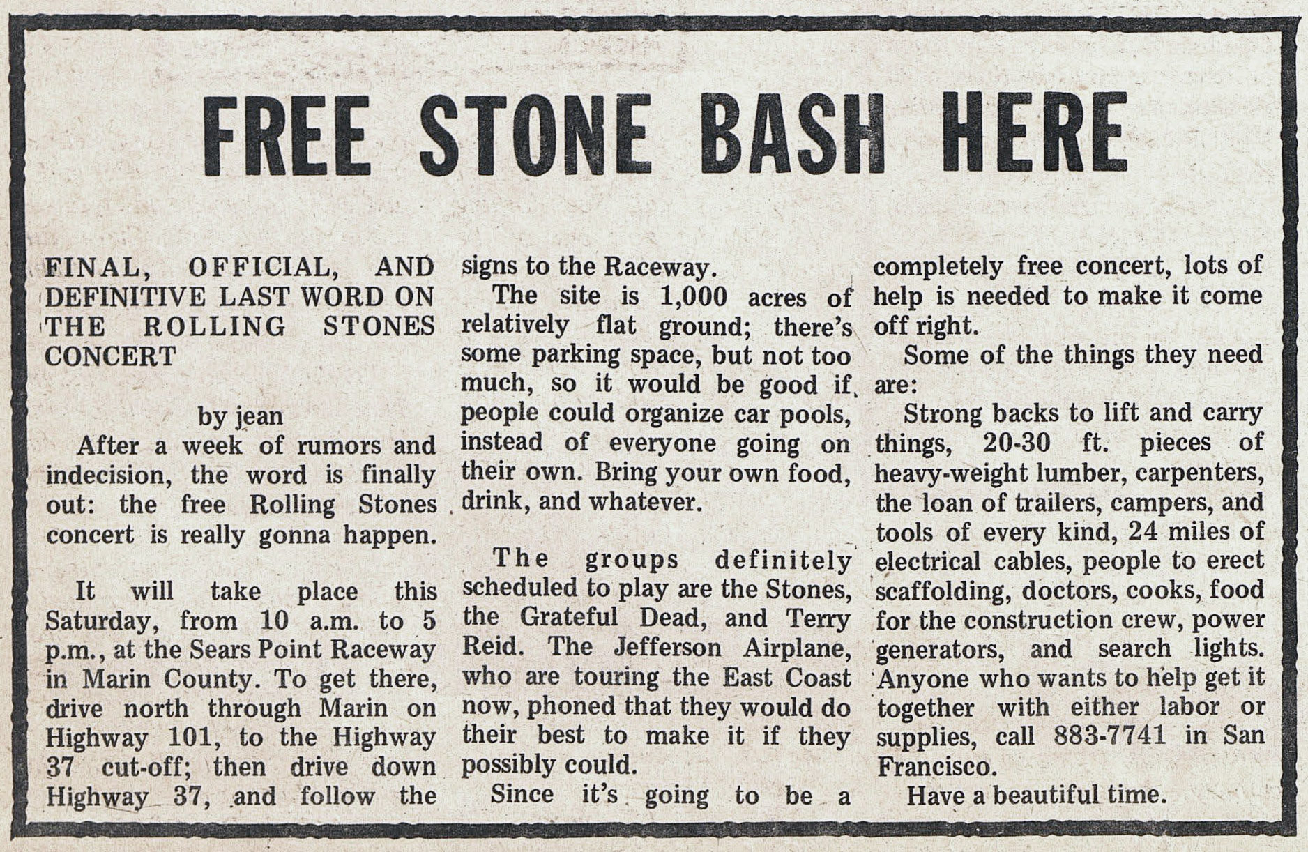 Rolling Stones, Jefferson Airplane, Flying Burrito Brothers, Crosby, Stills, Nash & Young, and Santana