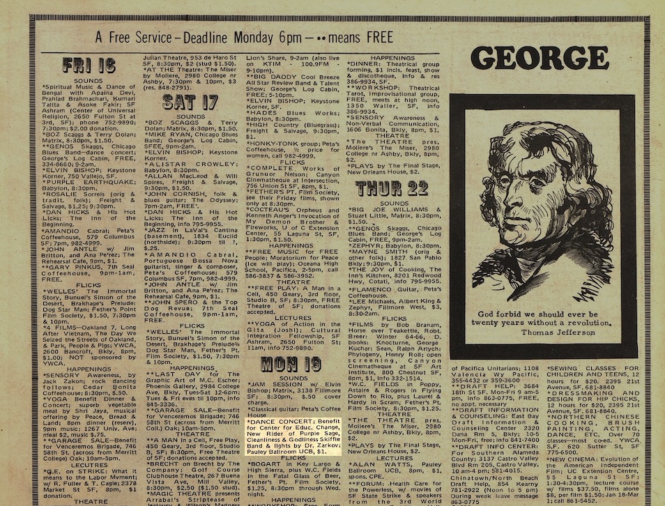 listing: San Francisco Chronicle, January 19, 1970, p. 36