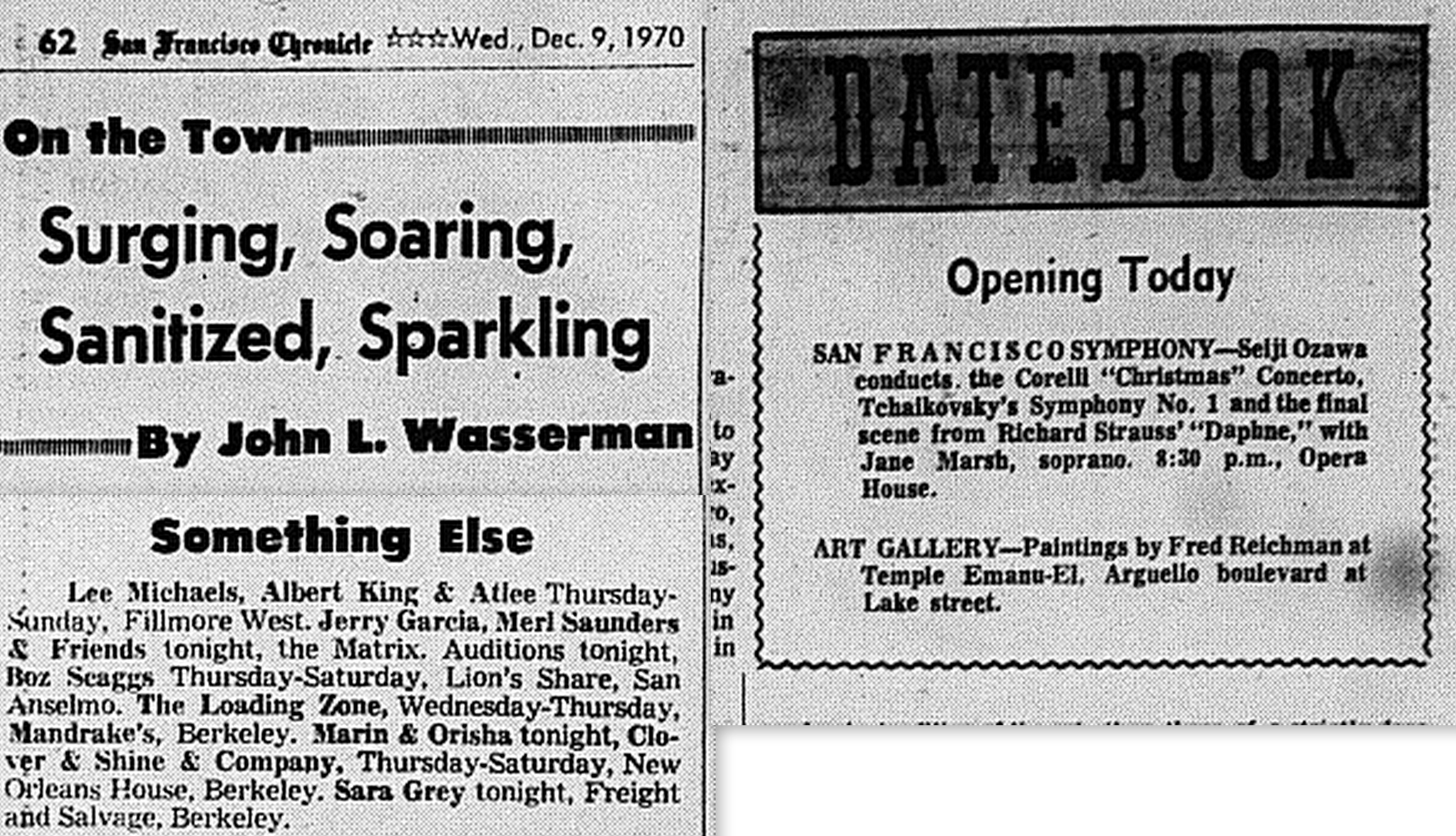listing: San Francisco Chronicle, December 9, 1970, p. 62;