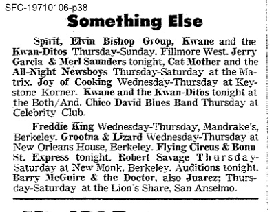 listing: San Francisco Chronicle, January 6, 1971, p. 38