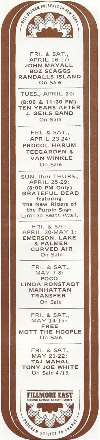 April 25, 1971: Fillmore East