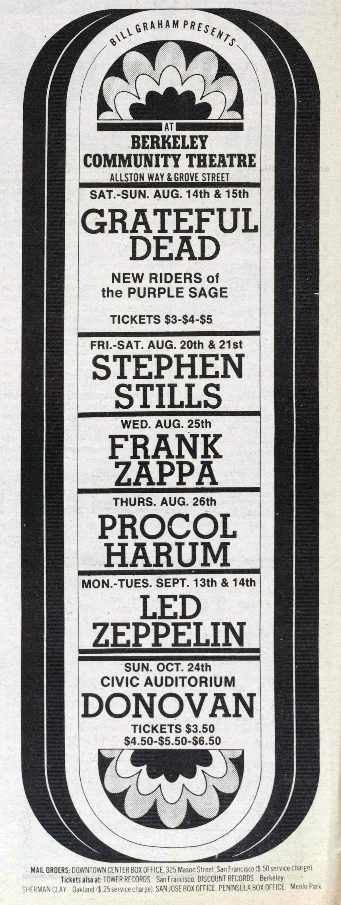 expost: "Short shit," Berkeley Tribe, September 3-9, 1971, p. 13. Bill Graham got $3,000, the GD got $21,000, and some Berkeley politics had their malas in a twist.