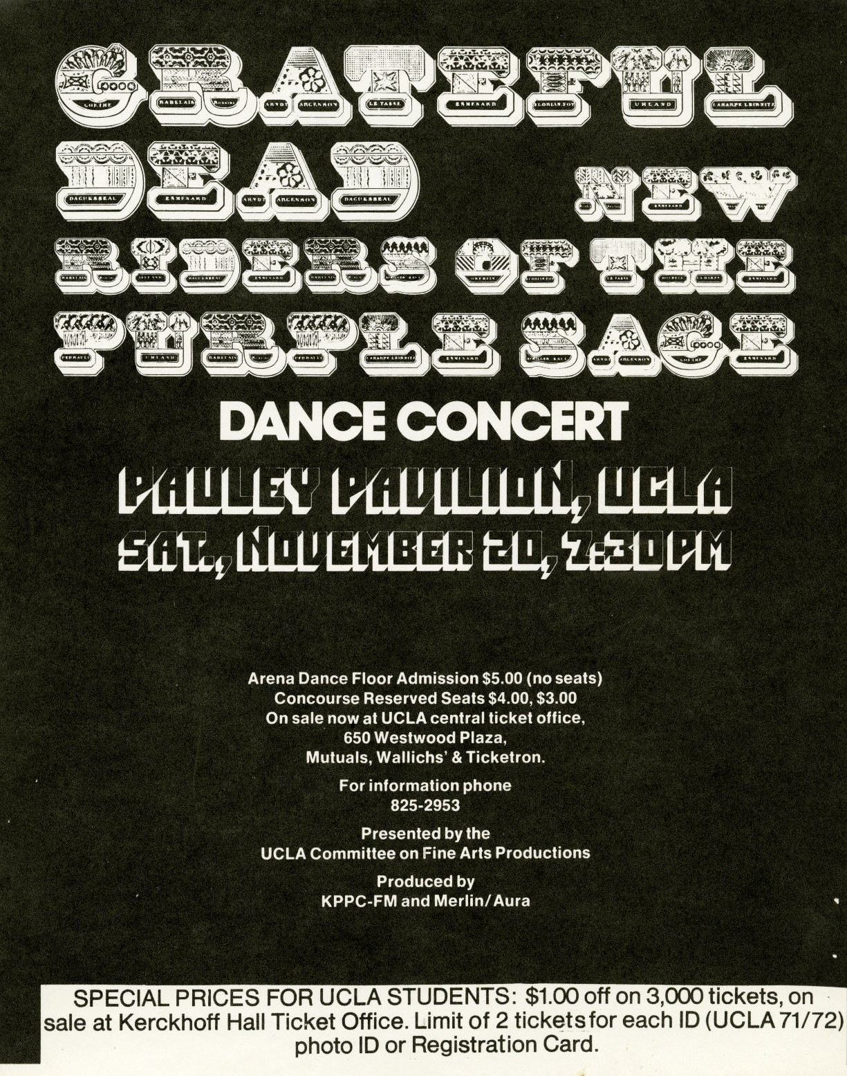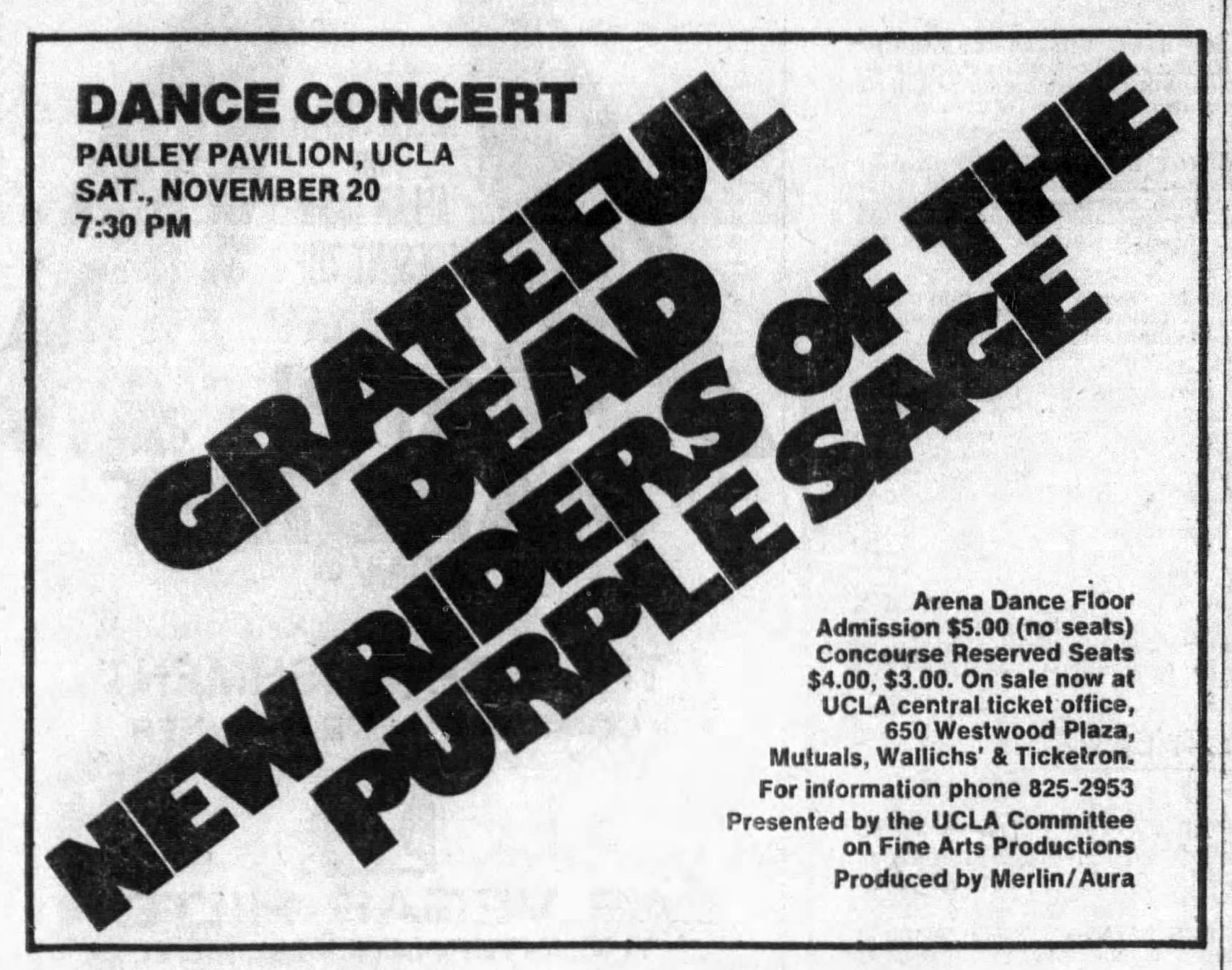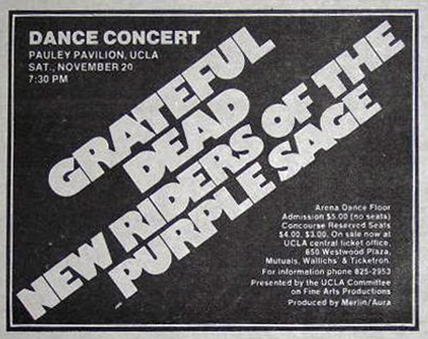 preview: "Grateful Dead headlines UCLA dance-concert," News (Van Nuys, CA), November 19, 1971, p. 1-B (central edition).