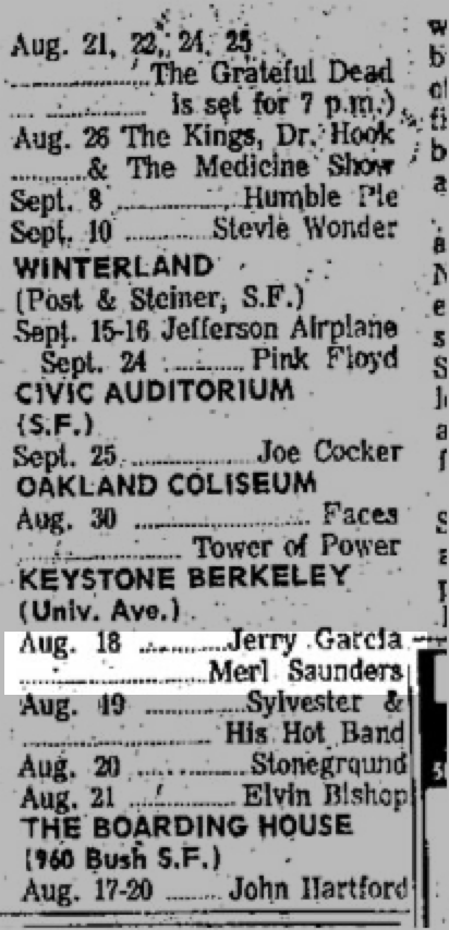 August 18, 1972 Keystone Berkeley, Berkeley, CA: Jerry Garcia-Merl Saunders