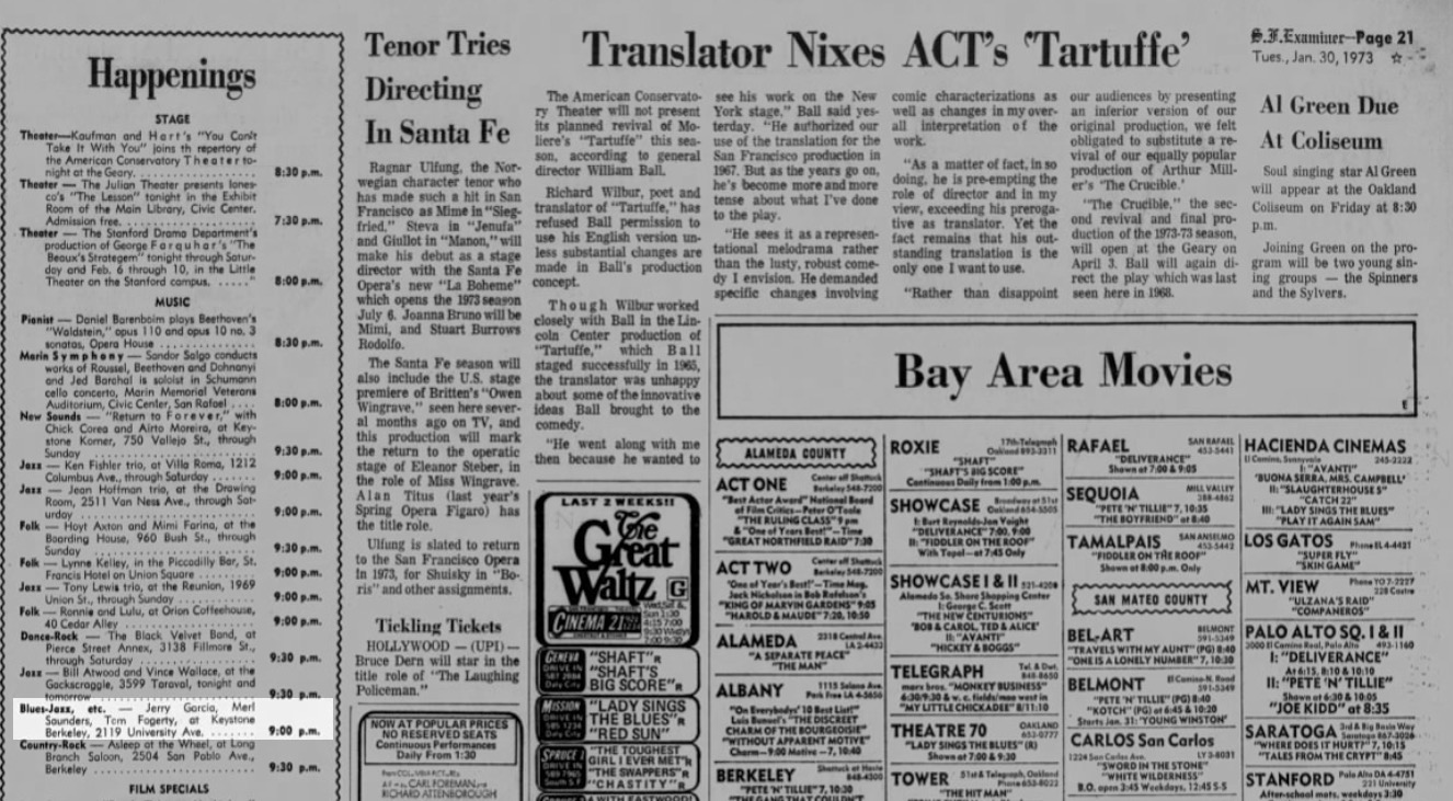 , February 2, 1973, p. 51, billing "Garcia, Saunders, Fogerty"