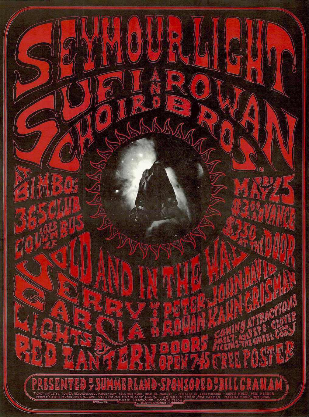 This gig was connected with the "Summerland" project, a work-study program by and for students at San Francisco Opportunity II High School, underwritten by Bill Graham. Richard Greene was not present at this show, per his datebooks. There is eyewitness testimony that John Hartford appeared with Old And In The Way this night, but after that report came in we have come to hold some uncertainty.