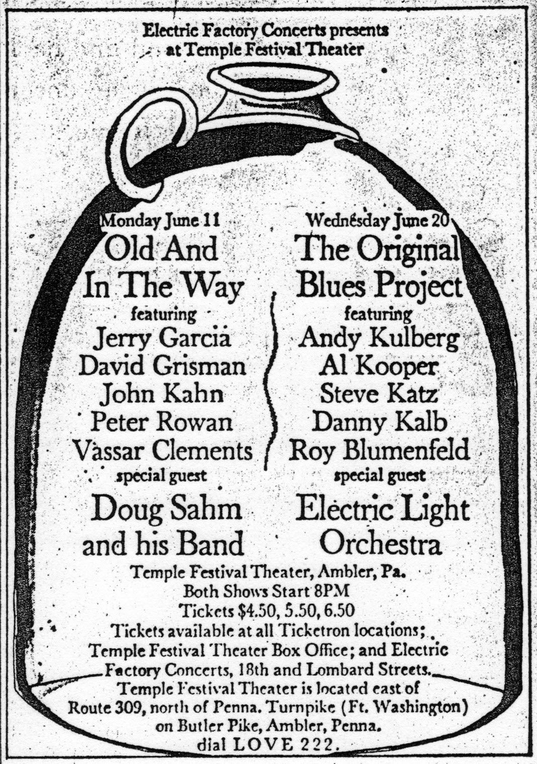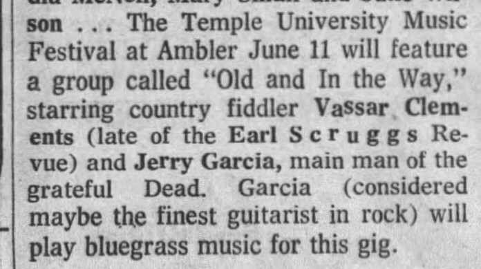 previews: "Bluegrass Band Slated at Temple," Courier-Post, June 4, 1973, p. 3 | "Temple Univ. Slates Festival Theater," Philadelphia Tribune, June 5, 1973, p. 15 | “Two Rock Shows at Temple Festival,” Sunday Times Advertiser (Trenton, NJ), June 10, 1973, p. 18