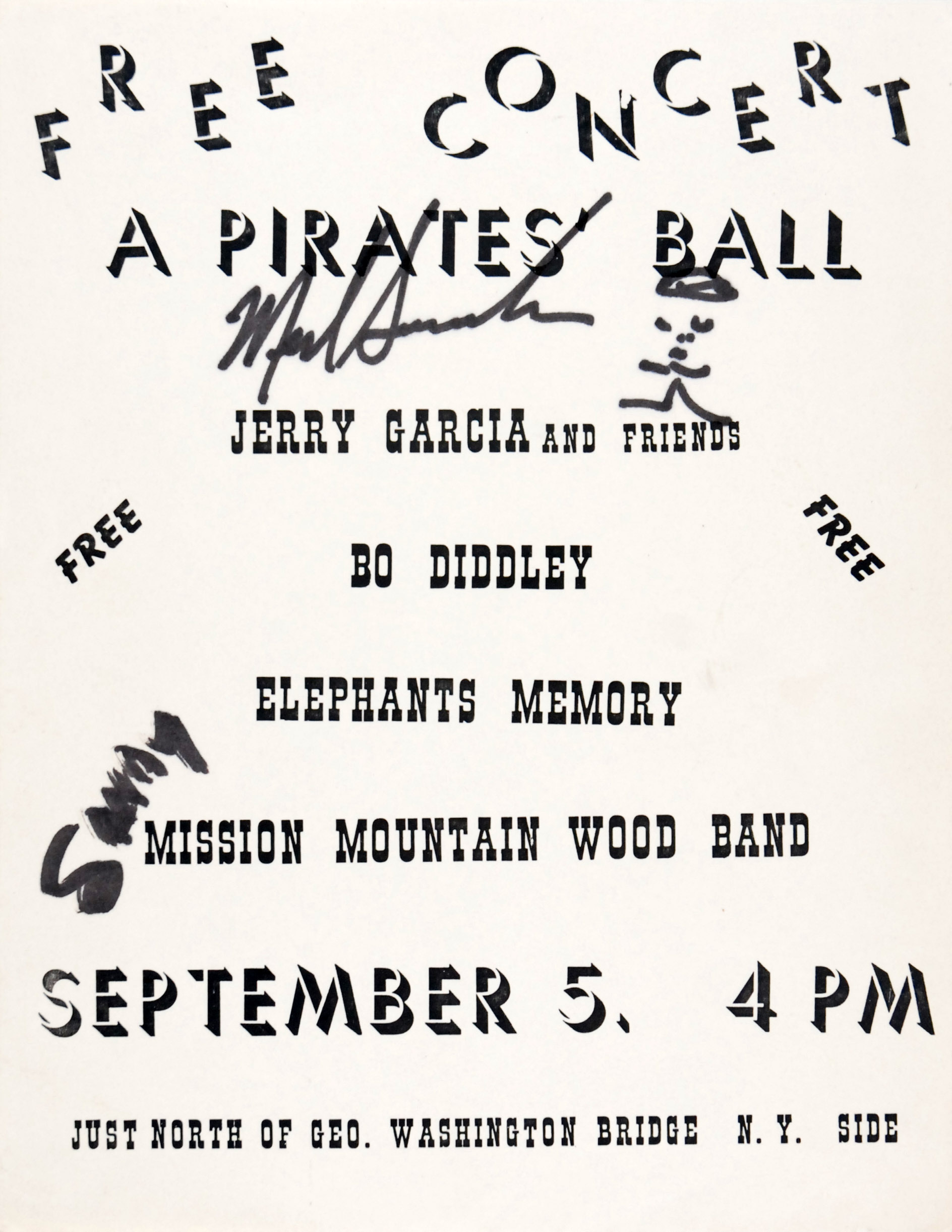 Additional color from Audio Engineer Jeffrey Kawałek "I was the audio assistant for this show, on board the boat with the bands, a full film crew (shooting footage for Leon Gast’s documentary on the Hell’s Angels), and about 250 Hell’s Angels, who were celebrating a 'Free Sonny Barger' party. One of the Angels got married on board, with Bo Diddley officiating. It was supposed to be a free concert under the George Washington Bridge, but because the generator was under-rated, there was not enough power to run the film lighting and the PA, and the idea of a free concert was eventually scrapped, with the celebration and performances confined to the top deck of the boat. What a zoo!!"