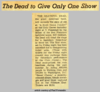News clipping from unknown periodical explains the two shows were condensed to one due to low ticket sales.