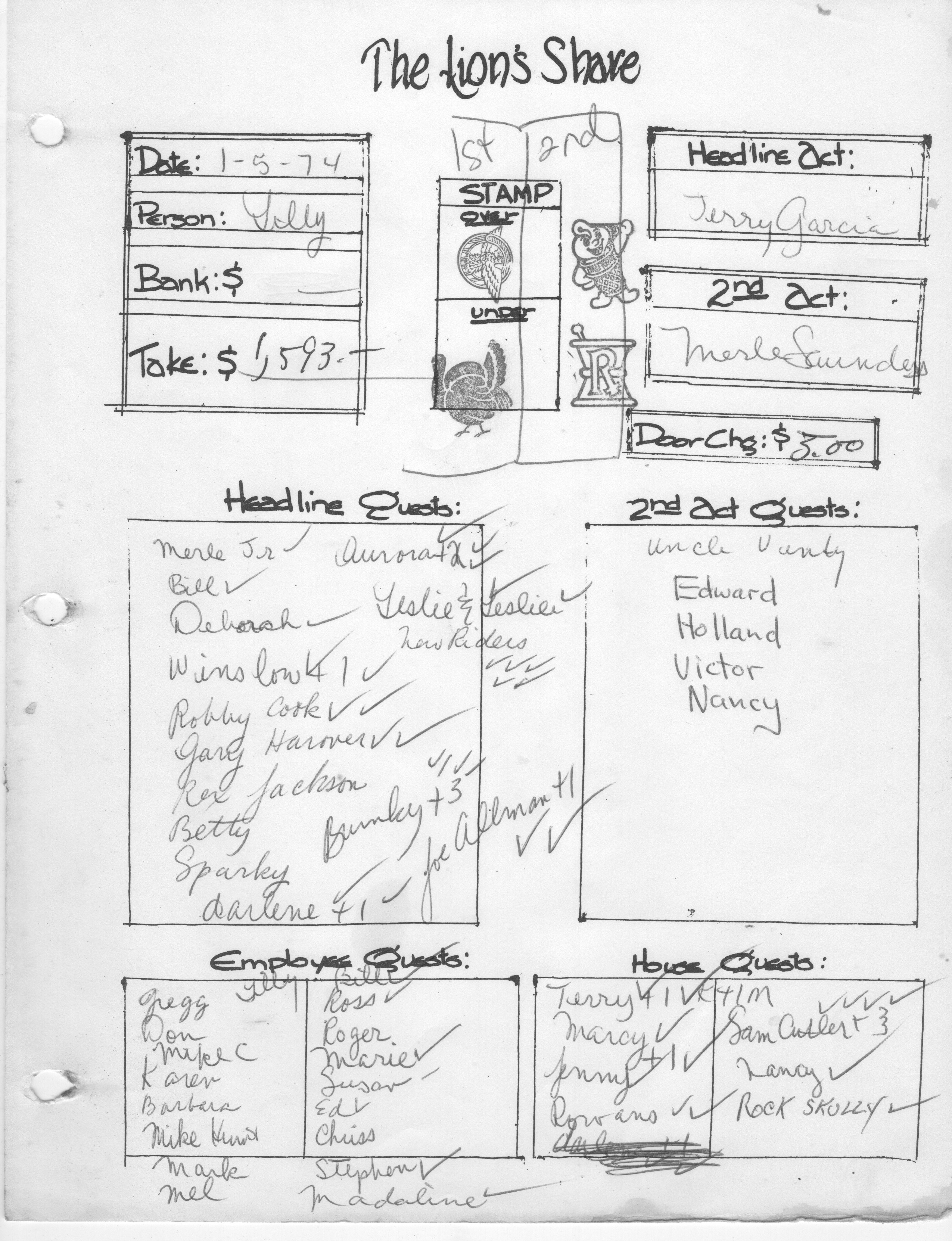 Per Kurt Huget, take this night was $1,593 - a big night at the Share!