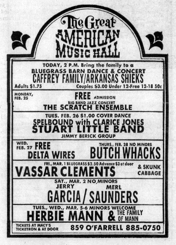 ad: San Francisco Examiner, February 25, 1974, p. 24. Further ads ran daily through March 1st.