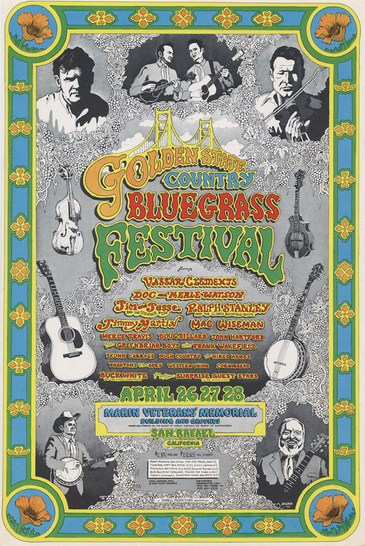 Bear Creek Boys, Rick Shubb & the Hired Hands, Buck White & the Down Home Folks, Jim & Jesse McReynolds, Norman Blake & Tut Taylor, Mac Wiseman, Greenbriar Boys, Jimmy Martin, Doc & Merle Watson, Skunk Cabbage, Ramblin' Jack Elliott, John Hartford, Ralph Stanley, Donna Washburn, Doug Dillard & the Intruders, and Nitty Gritty Dirt Band