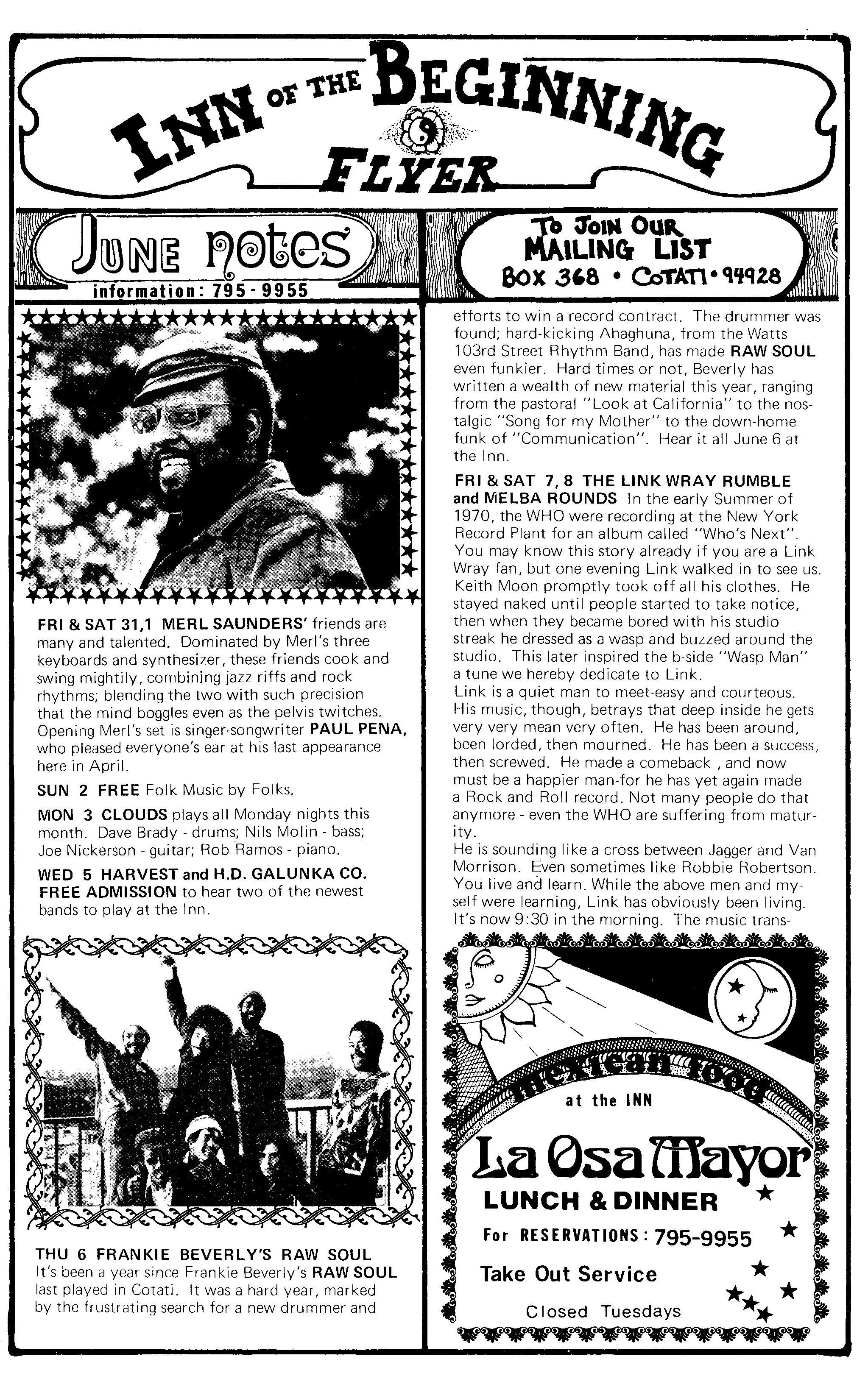 • JGMF: Merl Saunders and Friends: May 31 – June 1, 1974, Inn of the Beginning, Cotati