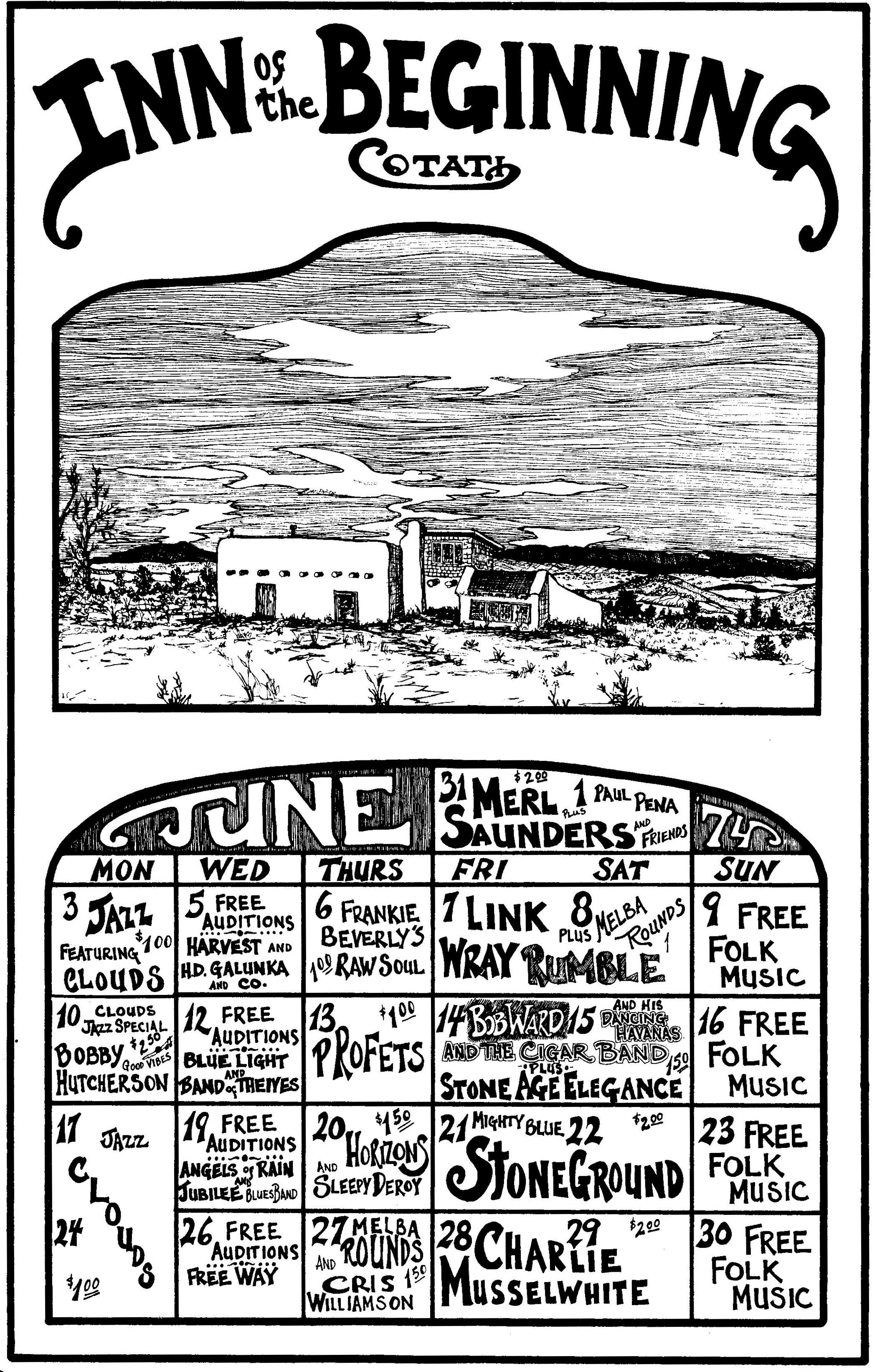 • We have added the musicians based on a picture posted by Tony Saunders to Facebook, identifying them and stating that the picture is from one of his first shows with his dad and Garcia, at the Inn. It is not 100% certain that these facts attach to the May 31-June 1, 1974 shows, but it seems very, very likely.