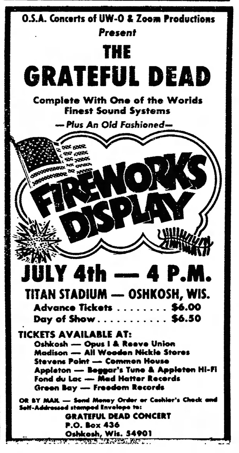 GD: July 4, 1974, Titan Stadium, Oshkosh, WI (CXL)