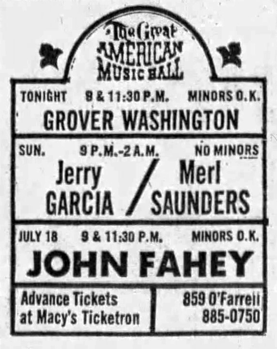 listing: Independent-Journal [San Rafael, CA], July 12, 1974, p. 23, billing a 9 PM show