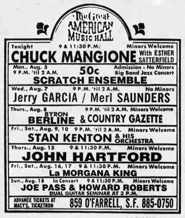 listings: [silent] Hayward Daily Review, August 2, 1974, p. 52 | "Datebook," San Francisco Chronicle, August 7, 1974, p. 44