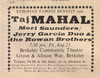 NB Taj Mahal closed the show, sharing a bill with Jerry after the one or two GASB gigs they did. Photos confirm Garcia, Saunders, Fierro, Kahn, Kreutzmann. Dave Tamarkin attended. Pat Lee has handbill, and his friend took pix. Mike Parrish reports Kreutzmann drumming.