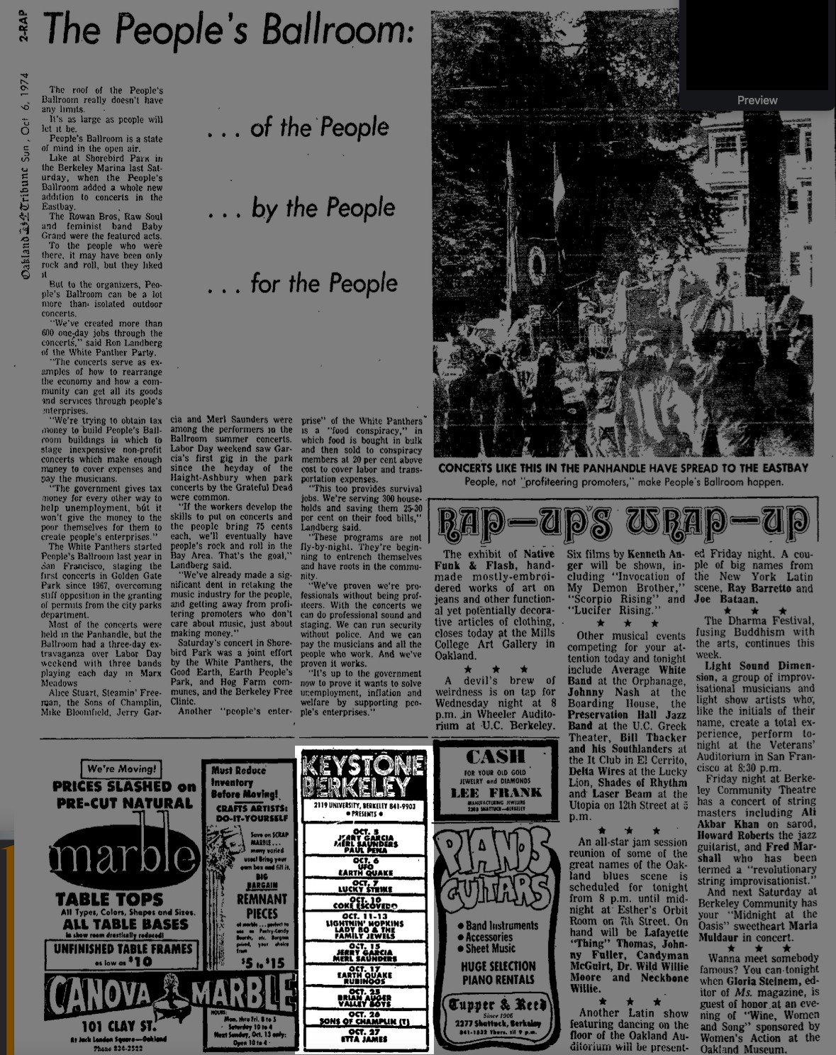 ad: Oakland Tribune, October 6, 1974, p. 2-RAP