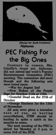 cxl; the UNM Popular Entertainment Committee (PEC) approved this gig ca. early July 1974.