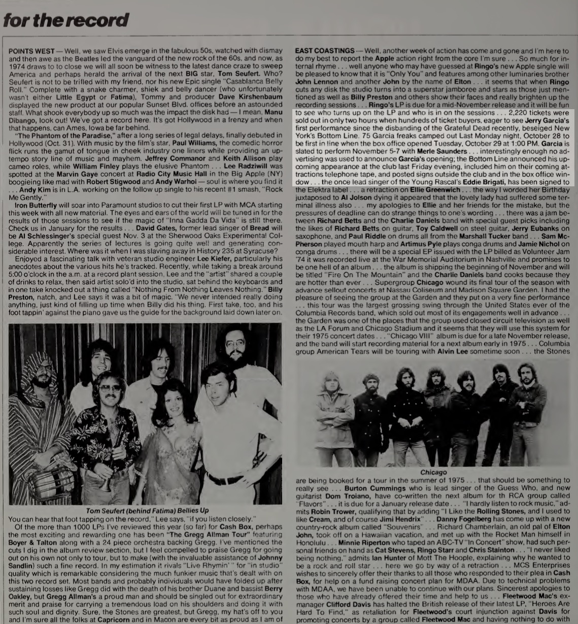 refs: "Saunders & Garcia Score 3-Hr. Advance Sellout for 6-Show Bottom Line Date," Variety, November 6, 1974, p. 53 | "For the Record," Cash Box, November 9, 1974, p. 18