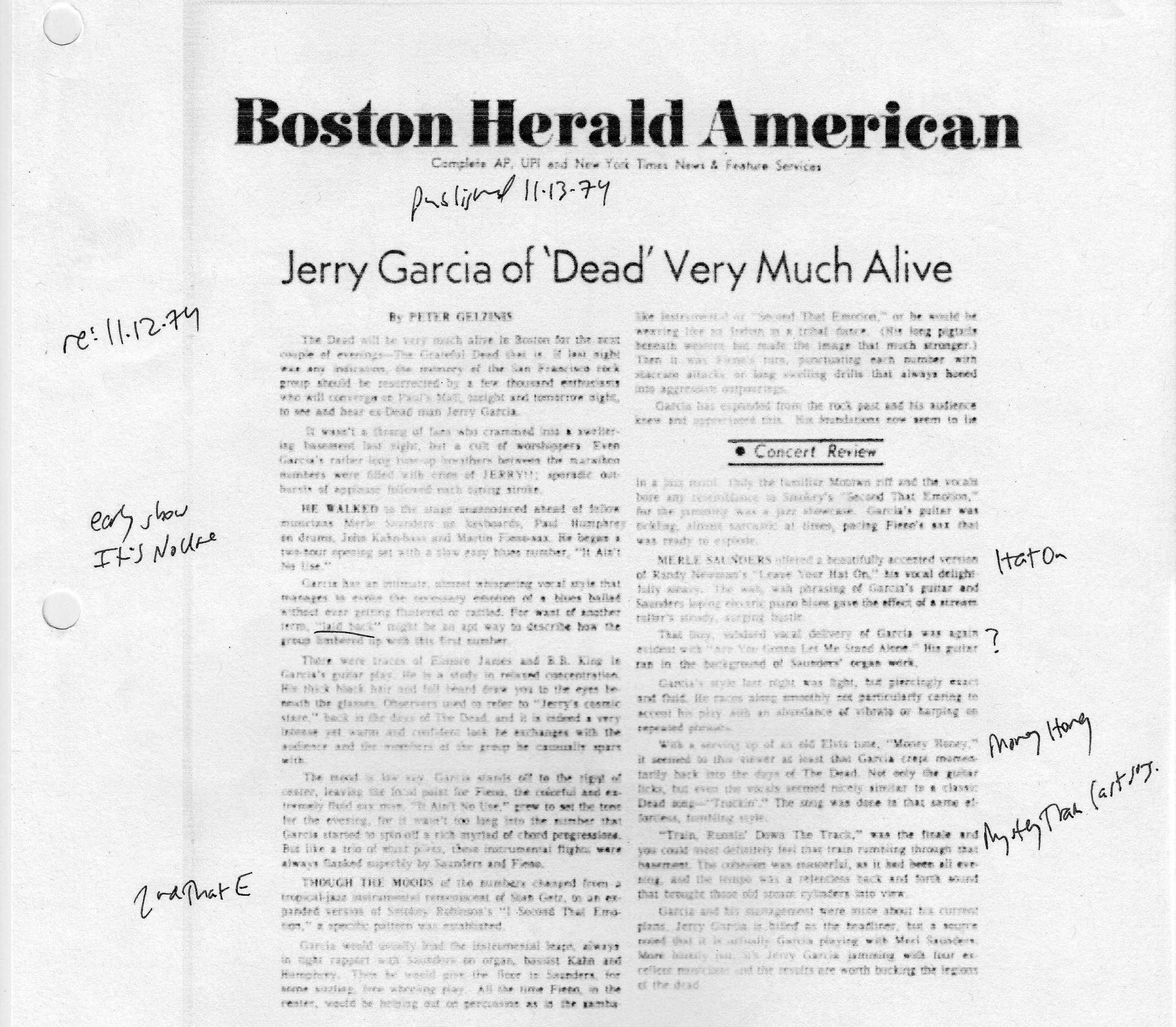 Setlist derived from Peter Gelzinis Boston Herald American review
