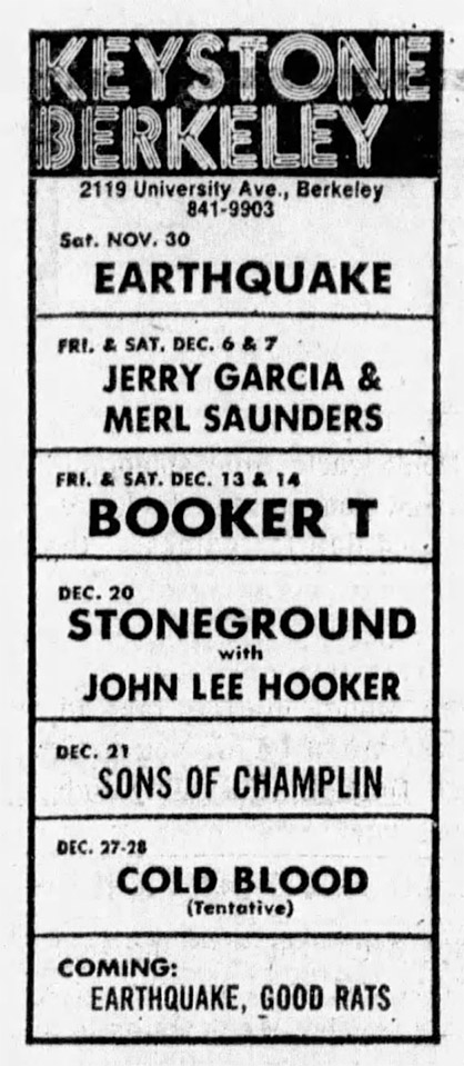 ads: San Francisco Sunday Examiner and Chronicle Datebook, November 24, 1974, p. 29 |San Francisco Sunday Examiner and Chronicle Datebook, December 1, 1974, p. 29