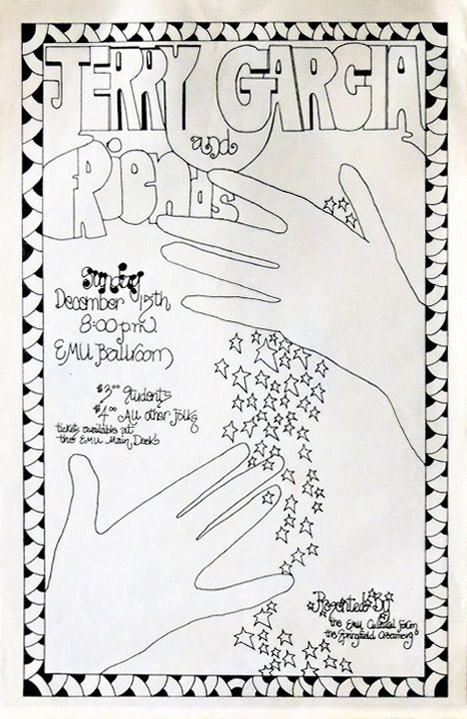 mention: Greg Lee, "ODE - the Emerald's weekly entertainment guide," Oregon Daily Emerald, December 12, 1974, p. B1, billing JGMS and Friends. Notes 950 tickets available, only onsale at the EMU main desk.