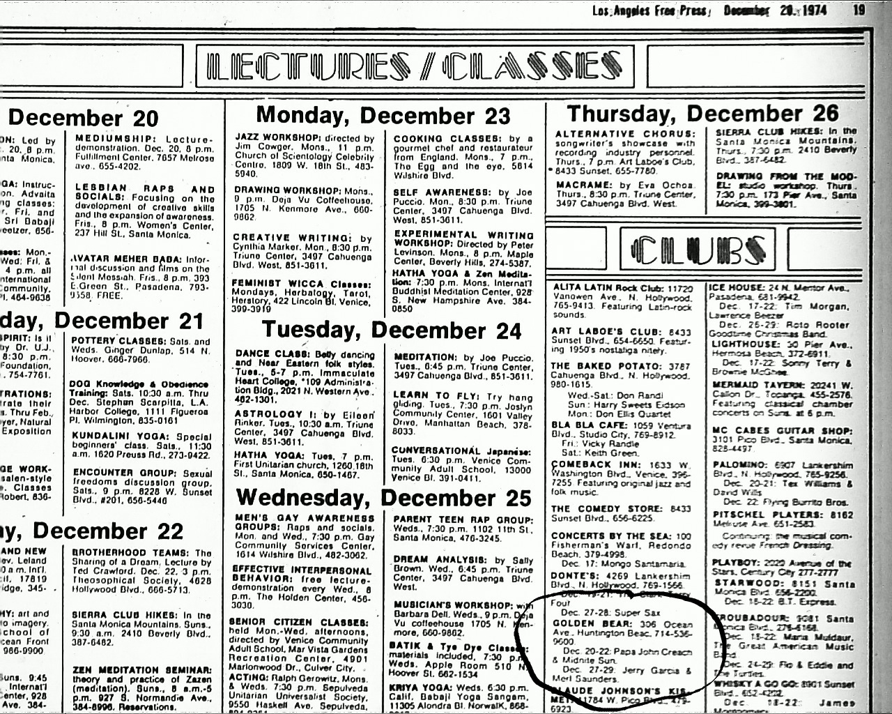 listing: Los Angeles Free Press, December 20, 1974, p. 19