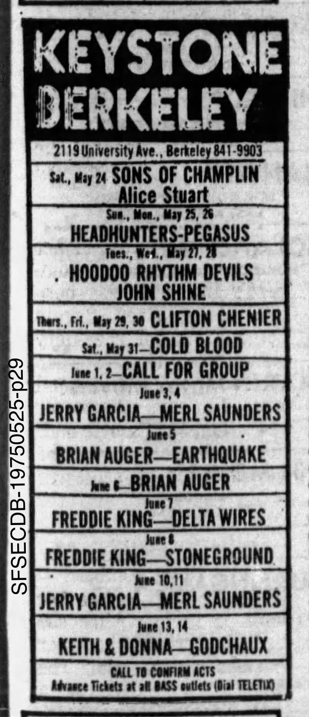 ads: San Francisco Sunday Examiner and Chronicle Datebook, May 25, 1975, p. 29 |San Francisco Sunday Examiner and Chronicle Datebook, June 1, 1975, p. 29