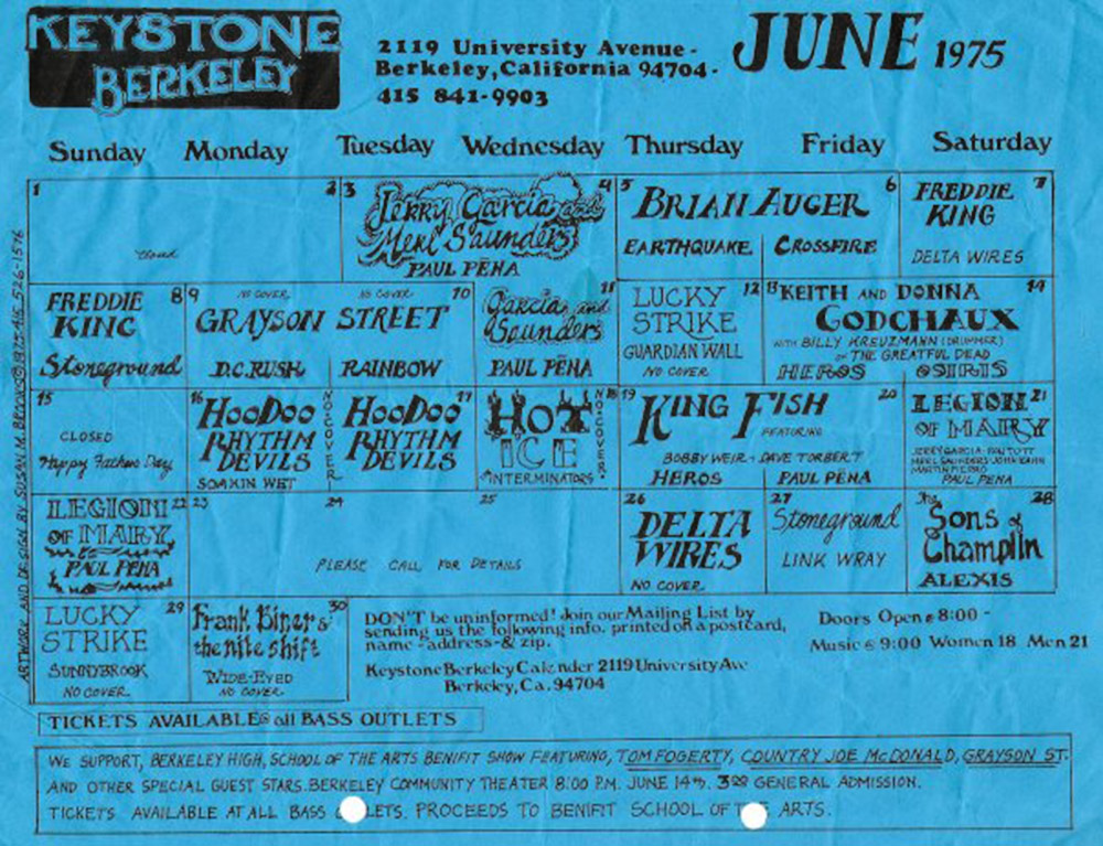 listings: "Eric Anderson to play benefit," Independent Journal [San Rafael, CA], May 30, 1975, p. 13 |San Francisco Sunday Examiner and Chronicle Datebook, June 1, 1975, p. 6 |San Francisco Examiner, June 2, 1975, p. 29