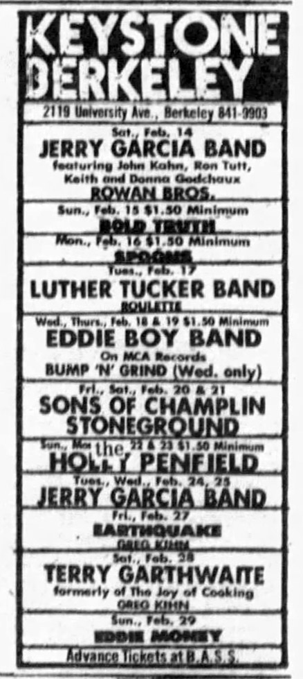 Jerry Garcia Band 1976-02-13 [Fri]