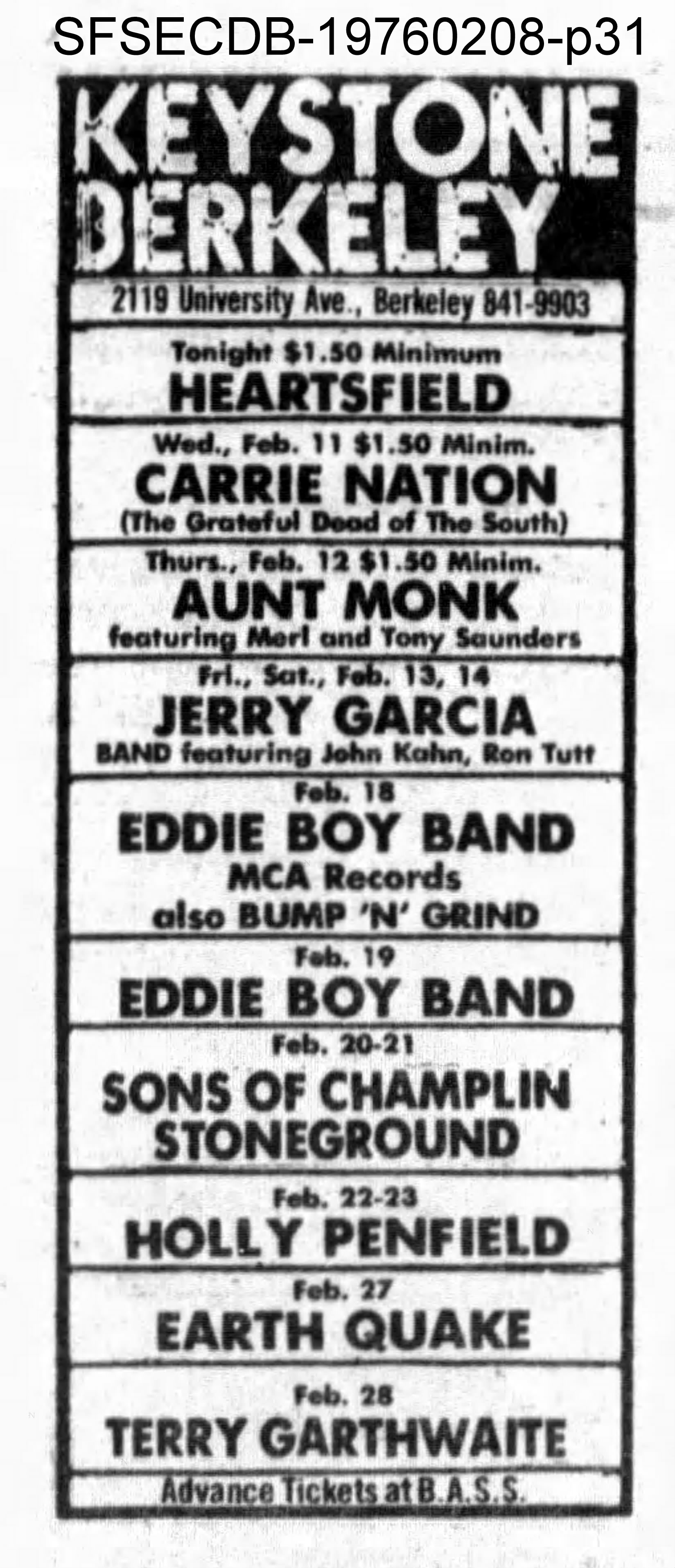 • ad: San Francisco Sunday Examiner and Chronicle Datebook, February 8, 1976, p. 31