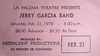 • Sue: JGB guarantee $4,000 plus 50% total gross over $8,300, on Gross Potential (GP) $10,000, for two shows each on two nights (2/21 and 2/22). I had venue capacity at 540, but handbill says only 350 seats per show.