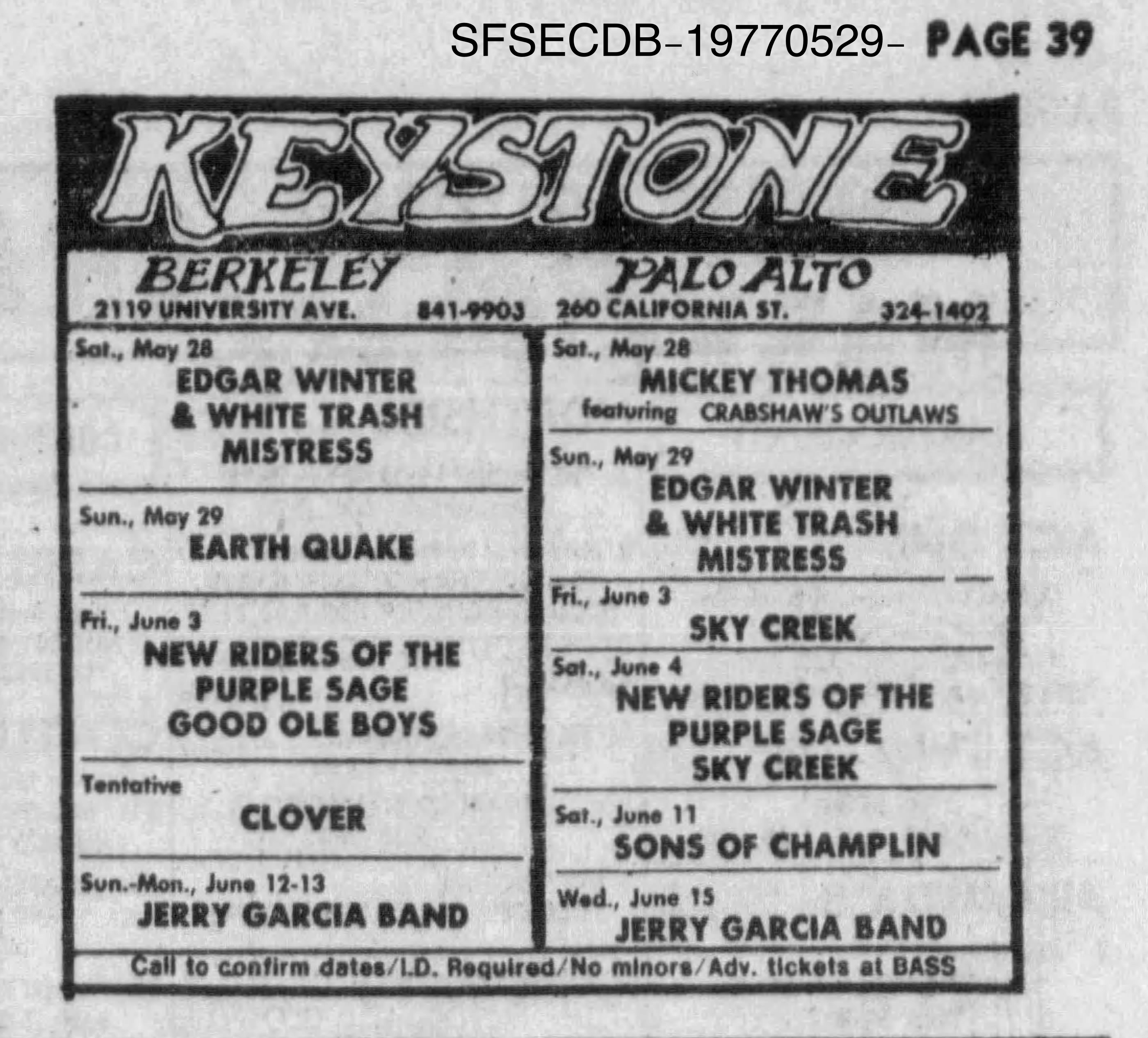 JGB - Keystone Berkeley June 1977