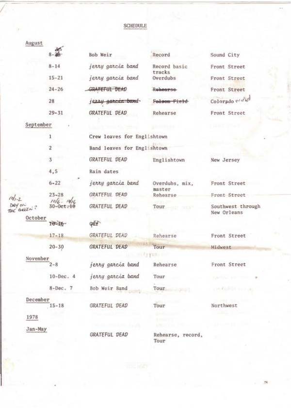 "Schedule", August 8, 1977 - ca. 1978